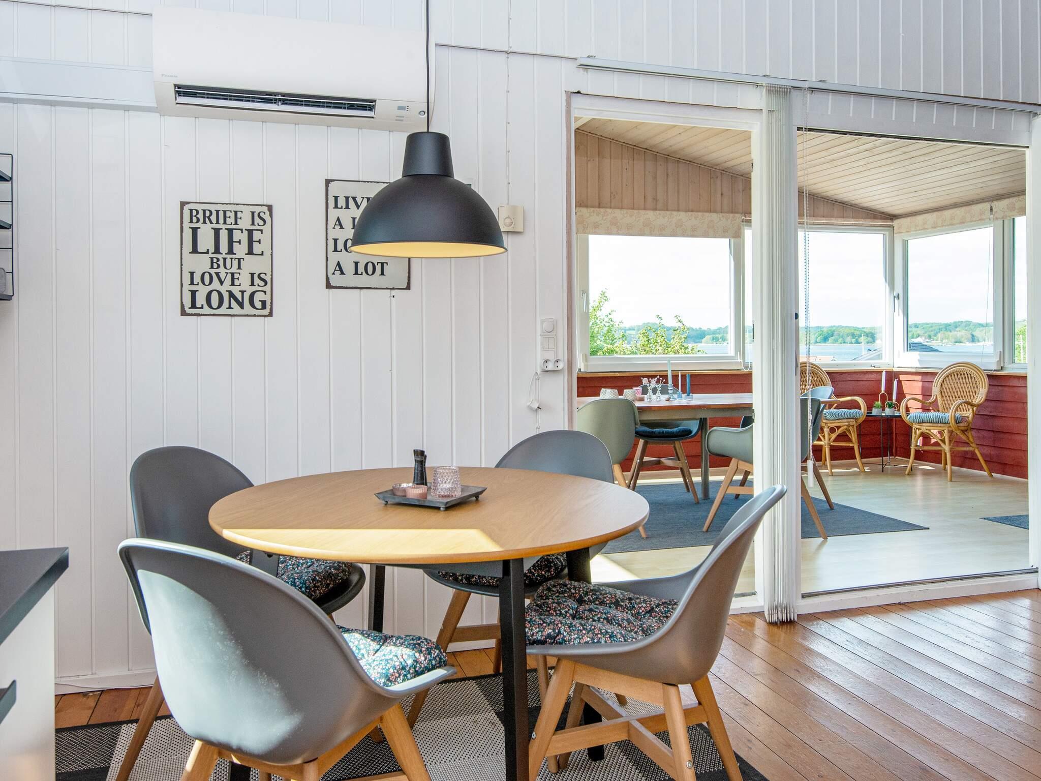 Auch von dem zugehörigen, gut 25 m2 großen Wintergarten sowie vom Wohnbereich des Hauses kann man die Aussicht zur Küste genießen und das Geschehen auf dem Wasser verfolgen.