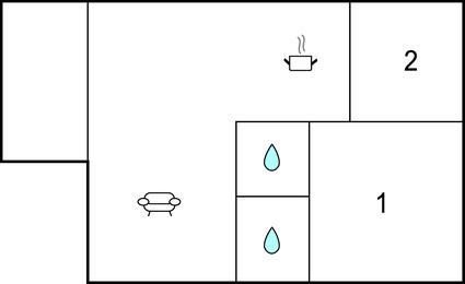 Badezimmer (nr. 1) - WC. Warmes und kaltes Wasser. Dusche