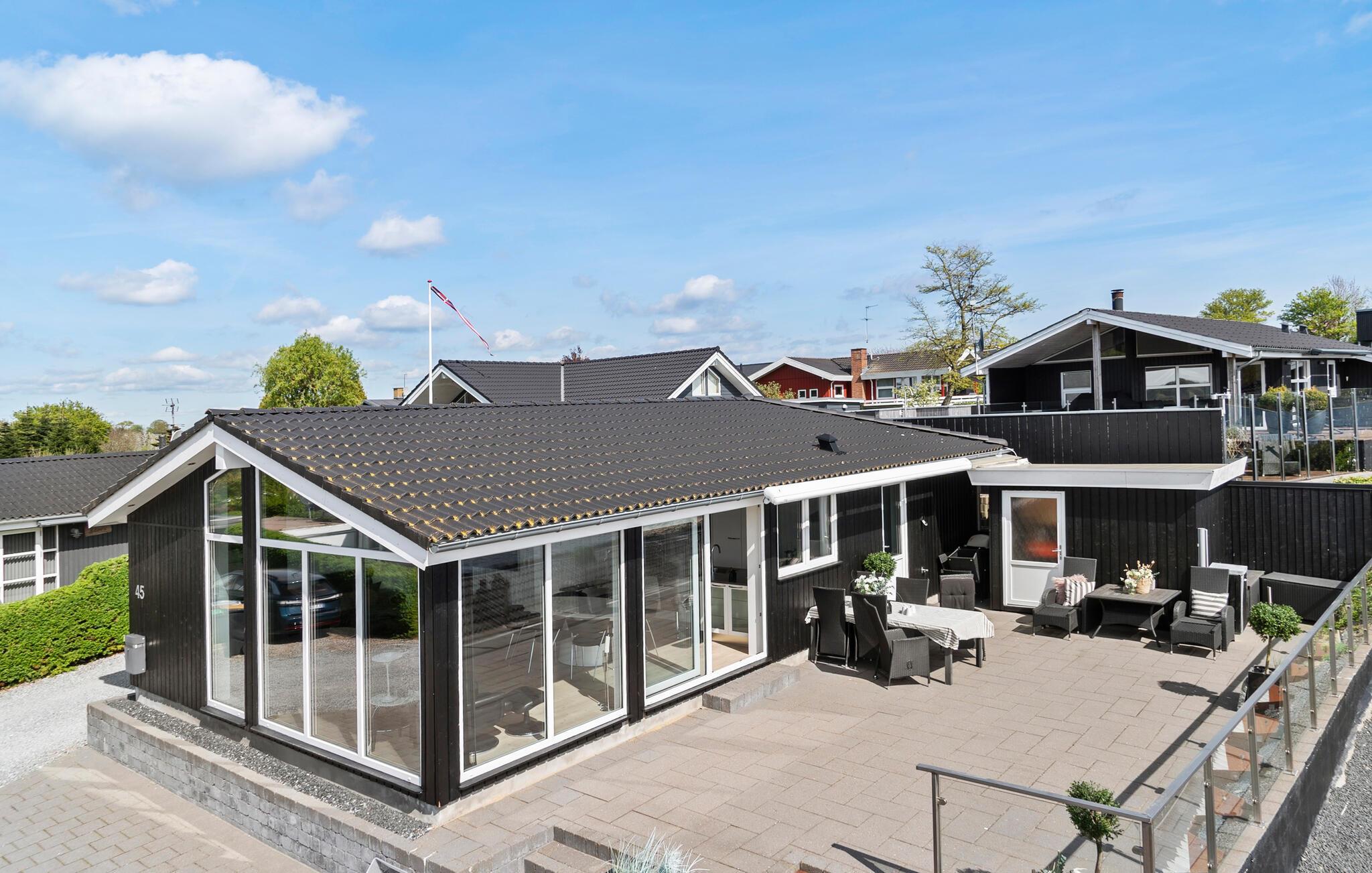 Im Sommer wird die große Terrasse zu Ihrem zweiten Wohnzimmer, nehmen Sie Sonnenbäder, grillen Ihre Lieblingsspeisen und nutzen die praktische Treppe hinab zum Strand.