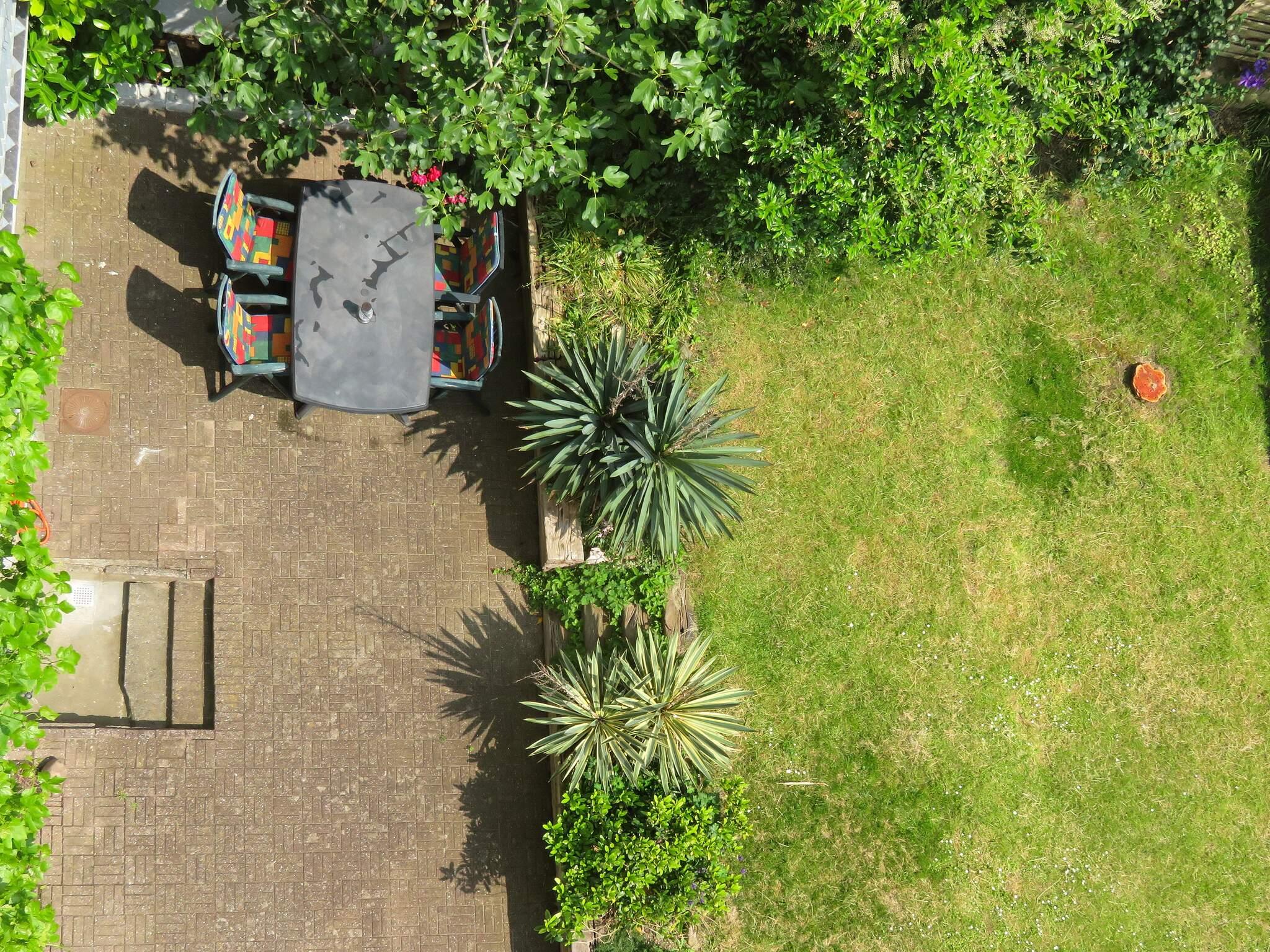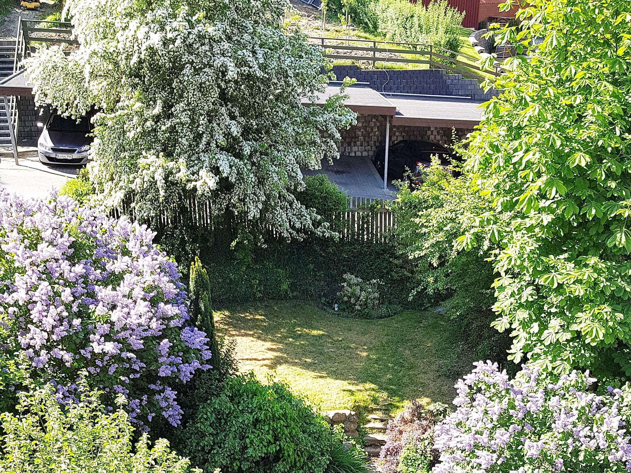 Direkt vor der Wohnung haben Sie Zugang zu einem fast gänzlich abgeschlossenem Innenhof und von ganz hinten auf dem Gartengrundstück gibt es sogar Ausblick zum Hafen.