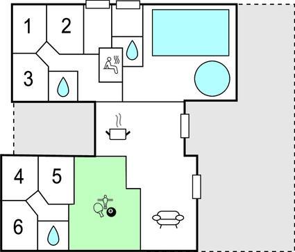 Badezimmer 5m2 (nr. 1) - WC. Warmes und kaltes Wasser. Dusche