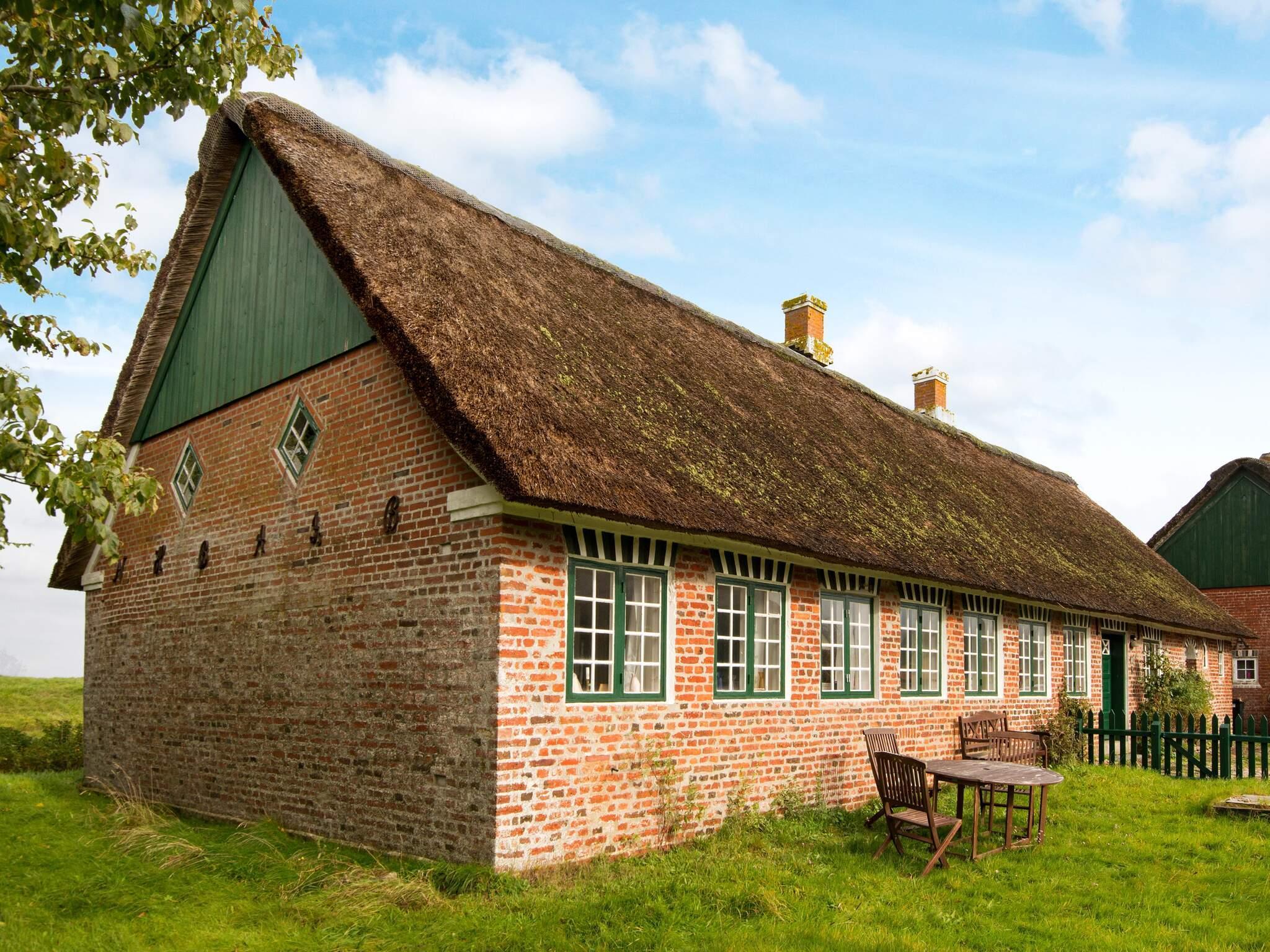 Die reetgedeckte Hauslänge steht noch wie ursprünglich erbaut und wurde nur mit den nötigsten, modernen Annehmlichkeiten ausgestattet. Die fantastische Lage, mit dem Deich und dem Wattenmeer direkt hinter dem Haus, sowie die reizvolle Umgebung an der Frontseite des Hauses vervollständigen das Erlebnis, hier eine ganz besondere Unterkunft zu bewohnen.