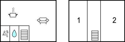 Badezimmer (nr. 1) - WC. Warmes und kaltes Wasser. Dusche