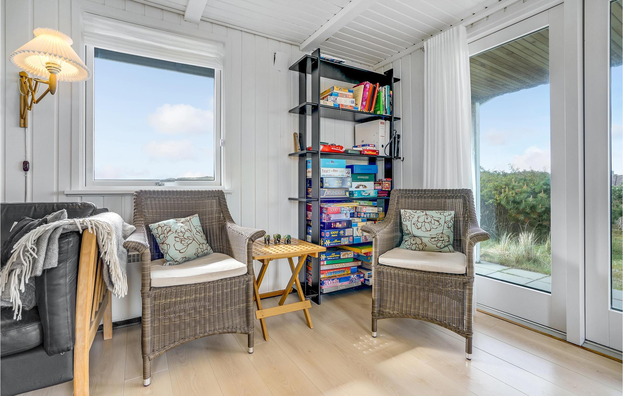 Willkommen in diesem hellen und behaglichen Urlaubsdomizil inmitten der zauberhaften Dünenlandschaft von Sønderho. Freuen Sie sich auf ruhige Tage, an denen Sie bei harmonischen Spieleabenden am Kaminofen und geselligen Mahlzeiten wertvolle Zeit mit Ihren Liebsten verbringen können. Gönnen Sie sich nach einem ausgedehnten Spaziergang an der frischen Seeluft wohltuende Entspannung in der Sauna und machen Sie es sich anschließend für einen Filmabend auf dem Sofa gemütlich.