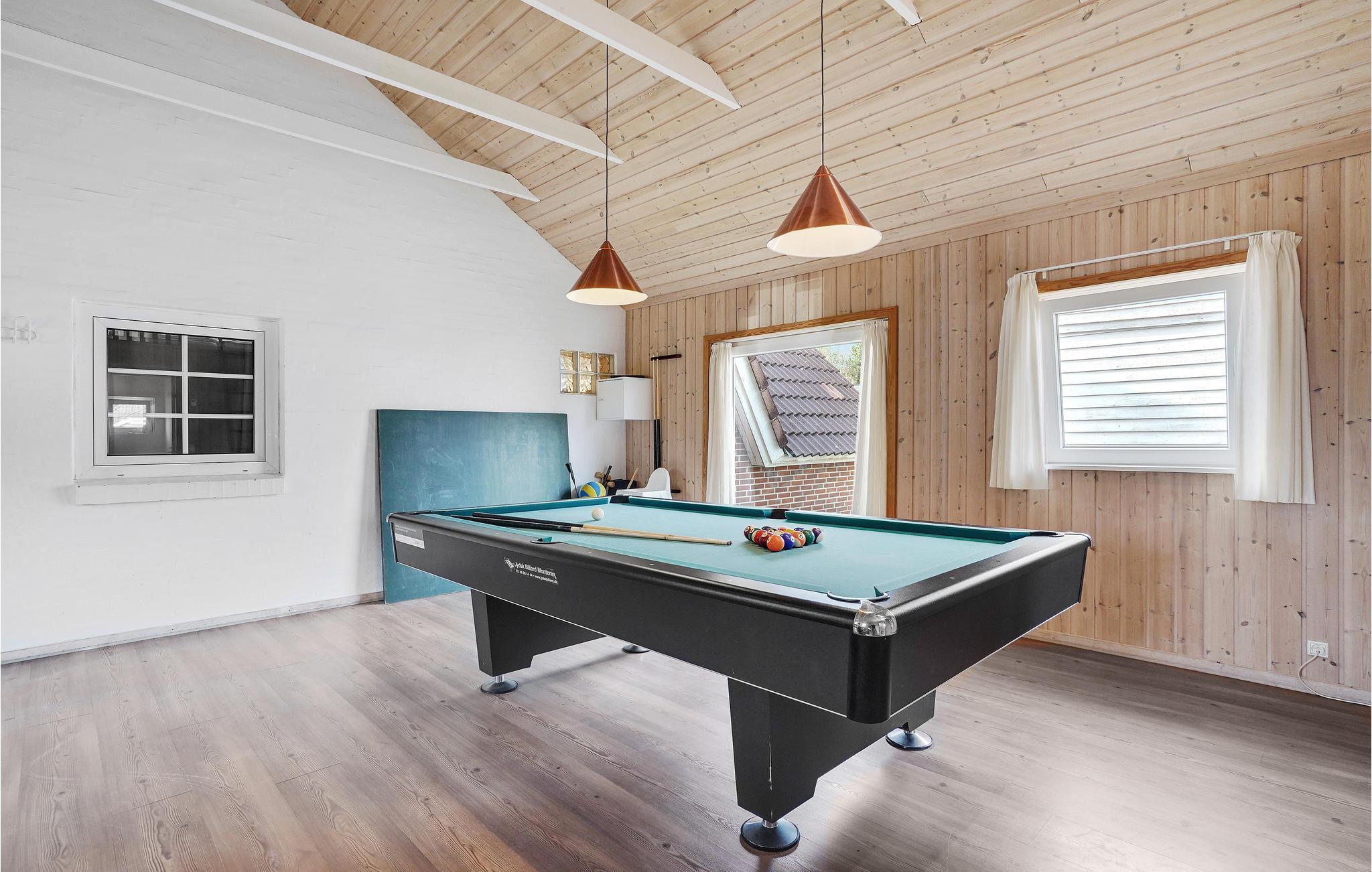 Das Poolhaus garantiert einen Ferienaufenthalt mit Abwechslung. Der Pool misst 25 m². Zum Entspannen laden Whirlpool für 5 und die Sauna. Im Aktivitätsraum stehen Billard, Tischtennis, Tischfußball und ein gemütliches Sofa. Auf der großen Terrasse vor der Wohnküche finden Sie behagliche Gartenmöbel. Und im Garten werden Ihre Kinder im Sandkasten, auf der Schaukel oder beim Ballspielen aktiv sein. Natürlich steht hier auch WLAN zur Verfügung. Sønderho ist sehr gut erhalten und liegt auf der Südspitze von Fanø, umgeben von Dünen und grünen Deichen. Viele Sehenswürdigkeiten sind ganz in der Nähe, z. B. Sønderho Mølle, Lorenzens Butik, mit wechselnden Ausstellungen, Hannes Hus, ein Kleinod aus dem 19. Jh. und die Kirche Sønderho. Die Läden der Kunsthandwerker und der alte Hafen mit der bekannten Sturmflutsäule sind unbedingt einen Besuch wert. In Hønen, auf der Südspitze von Fanø, können Sie außerdem die einzigartig unberührte Natur durchwandern.