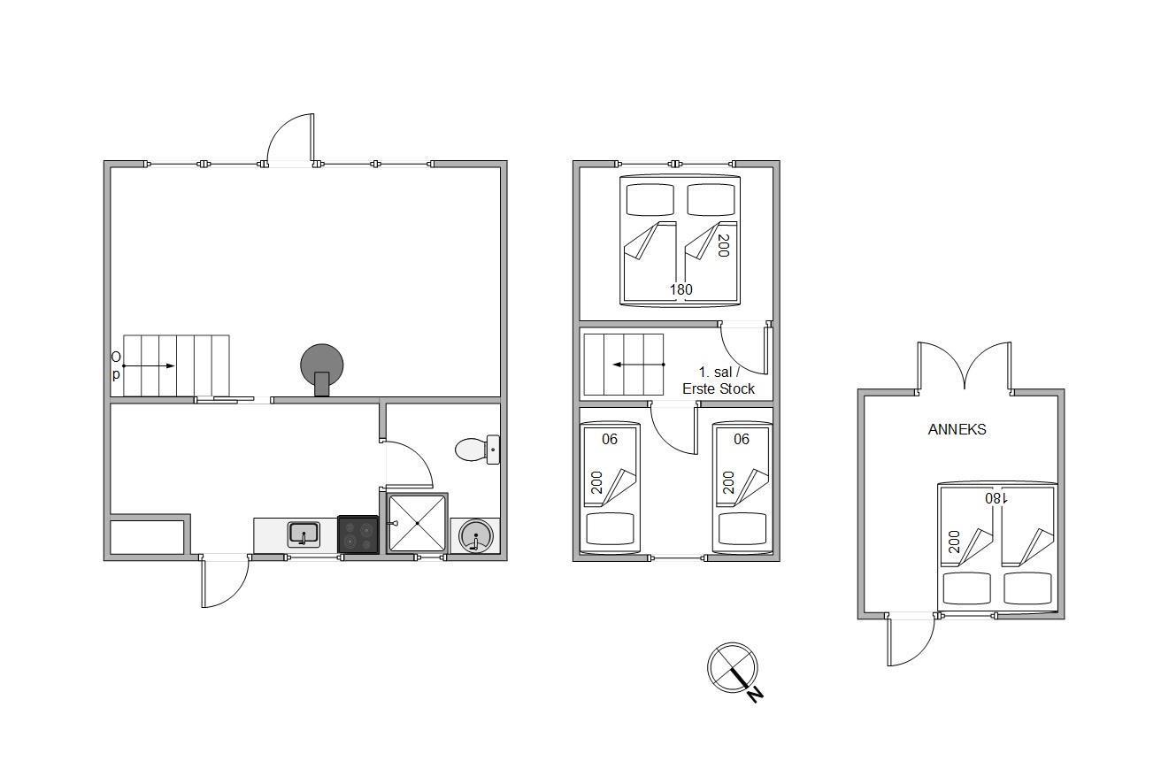 Das Reetdachhaus erstreckt sich über 2 Etagen und eignet sich ideal für eine kleine Familie oder 2 Paare, die eine stilvolle und komfortable Urlaubsbasis suchen. Im Obergeschoss befinden sich 2 behagliche Schlafzimmer, während das Erdgeschoss ein schönes Badezimmer sowie einen offenen Wohnbereich mit Küche und Essplatz beherbergt. Ein drittes Schlafzimmer liegt im gut ausgestatteten Anbau – eine ideale Lösung für Teenager oder für Gäste, die sich etwas mehr Ruhe und Privatsphäre wünschen.