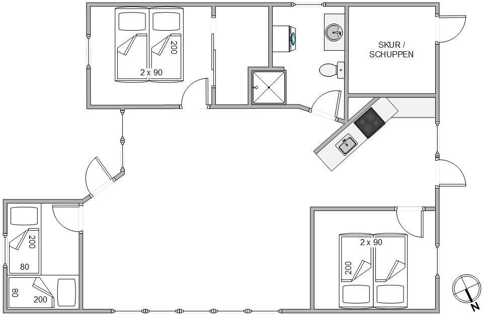 Spread across 70 square metres, there are three bedrooms, two with king-size beds (180x200cm) and one with two single beds (80x200cm). There's also a bathroom with shower and underfloor heating.