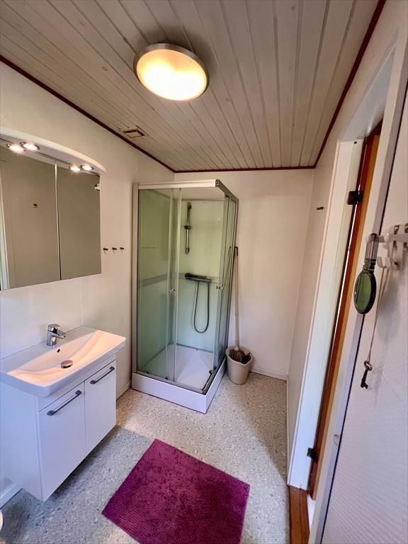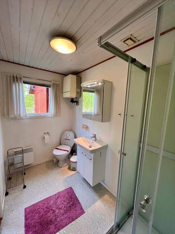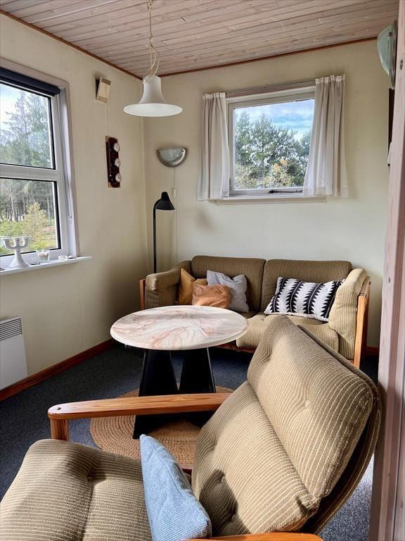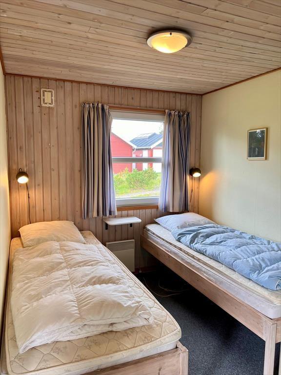 Das rot gestrichene Haus steht seit 1963 in dieser landschaftlich schönen Umgebung und trägt noch immer den Charme seiner Zeit – mit einer Einrichtung und Möblierung älteren Datums. Es handelt sich nicht um ein modernes Ferienhaus, sondern um ein einfaches Haus mit der besonderen Atmosphäre, die nur ein älteres Ferienhaus ausstrahlt. Die Küche bietet alles Notwendige für die Zubereitung eurer Urlaubsmahlzeiten, und im Wohnzimmer könnt ihr euch am Esstisch versammeln oder es euch in der Sofaecke mit einem guten Buch gemütlich machen. An kühleren Tagen sorgt der Kaminofen für wohlige Wärme und Behaglichkeit. Außerdem gibt es ein Badezimmer sowie drei Schlafzimmer, die eine praktische Basis für erholsame Urlaubstage bilden.