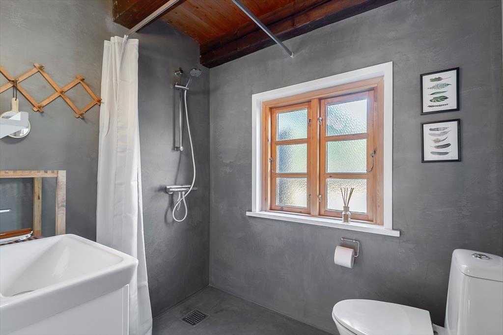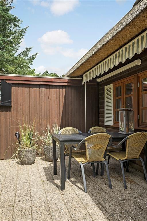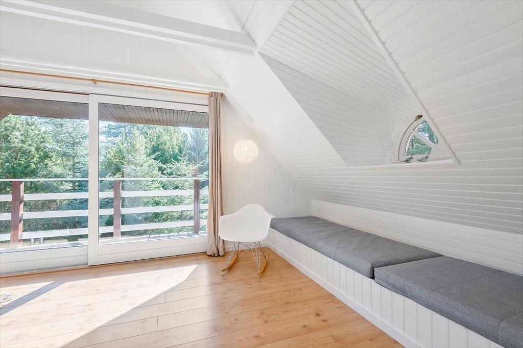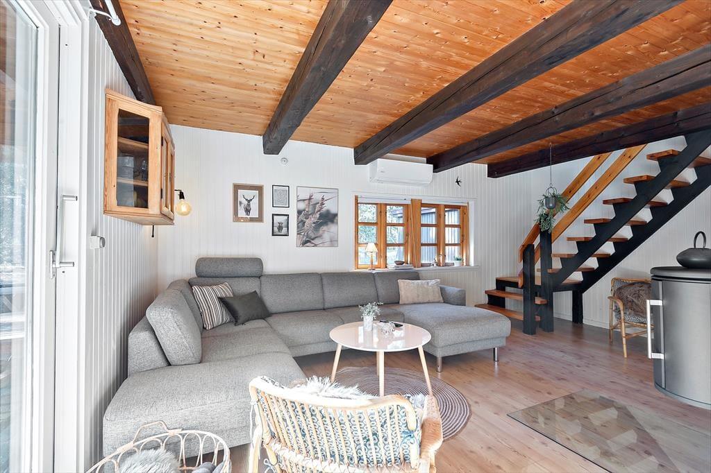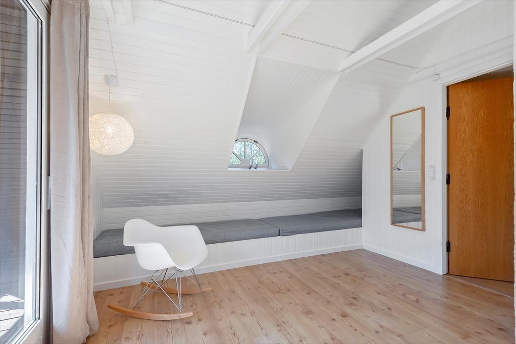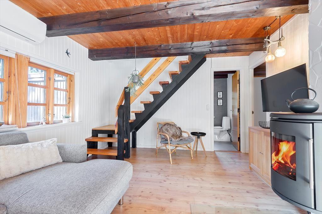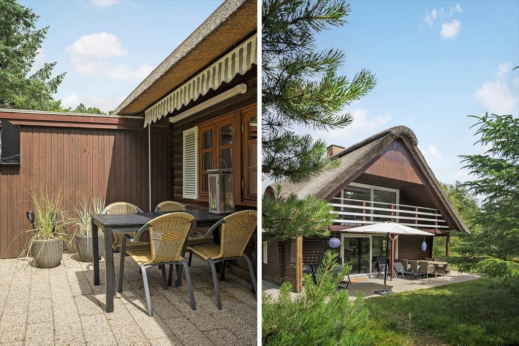 Mit seinem hohen Reetdach und der dunkelbraunen Holzfassade fügt sich das Sommerhaus perfekt in die malerische Umgebung ein. Dass das Haus 2022 einer gründlichen Renovierung unterzogen wurde, sieht man innen sehr deutlich, denn dort findest du moderne Möbel und helle Farbtöne. Dabei hat sich das Haus seinen Geist und seine angenehme Atmosphäre bewahrt, sodass es wirklich ein Ort ist, der zum Genießen und Entspannen einlädt. Eine gut ausgestattete Küche mit Essbereich ist offen mit dem Wohnzimmer verbunden, das einen Holzofen, eine Wärmepumpe, eine schöne Sofaecke und einen Flachbildfernseher mit Chromecast bietet. Ein schönes Duschbad und ein Schlafzimmer mit Doppelbett befinden sich auch hier im Erdgeschoss, und wenn du die Treppe hinauf in den ersten Stock nimmst, findest du zwei weitere Schlafzimmer, die ebenfalls über ein Doppelbett verfügen. Das größte Schlafzimmer hat einen eingebauten Nachttisch auf einer Seite und der große Fensterbereich bietet dir direkten Zugang zu einem Südbalkon.