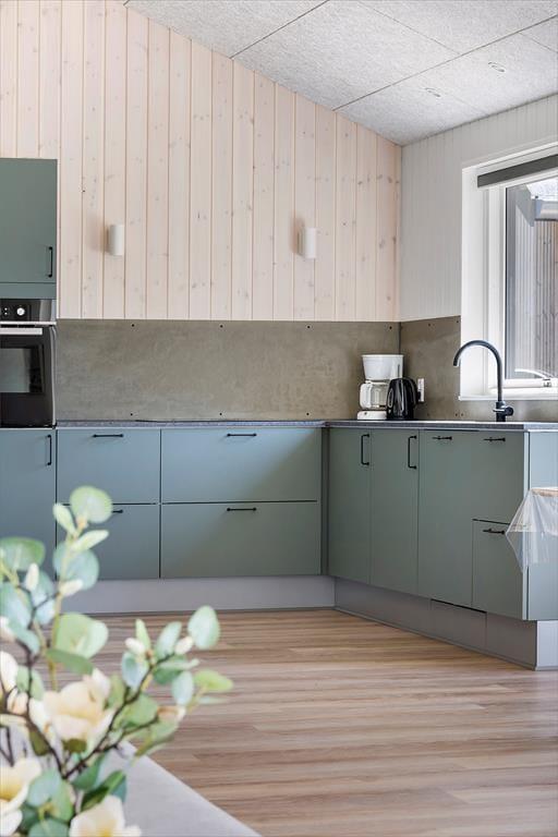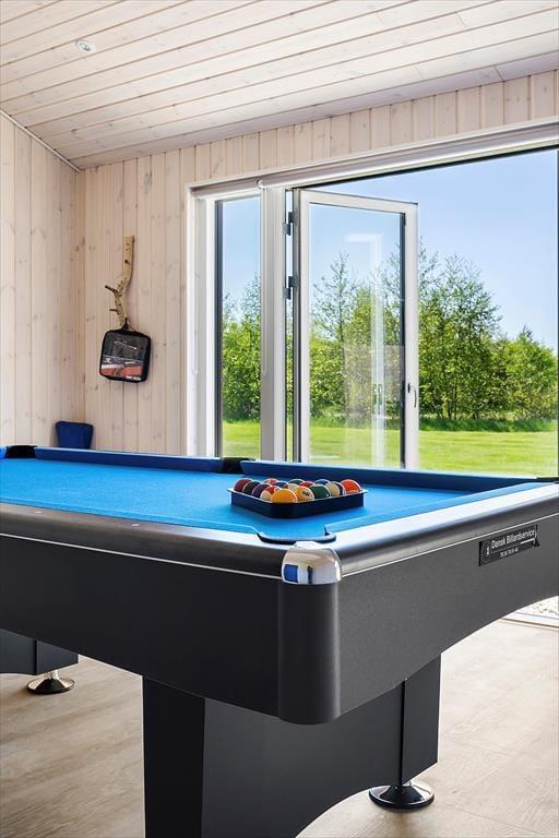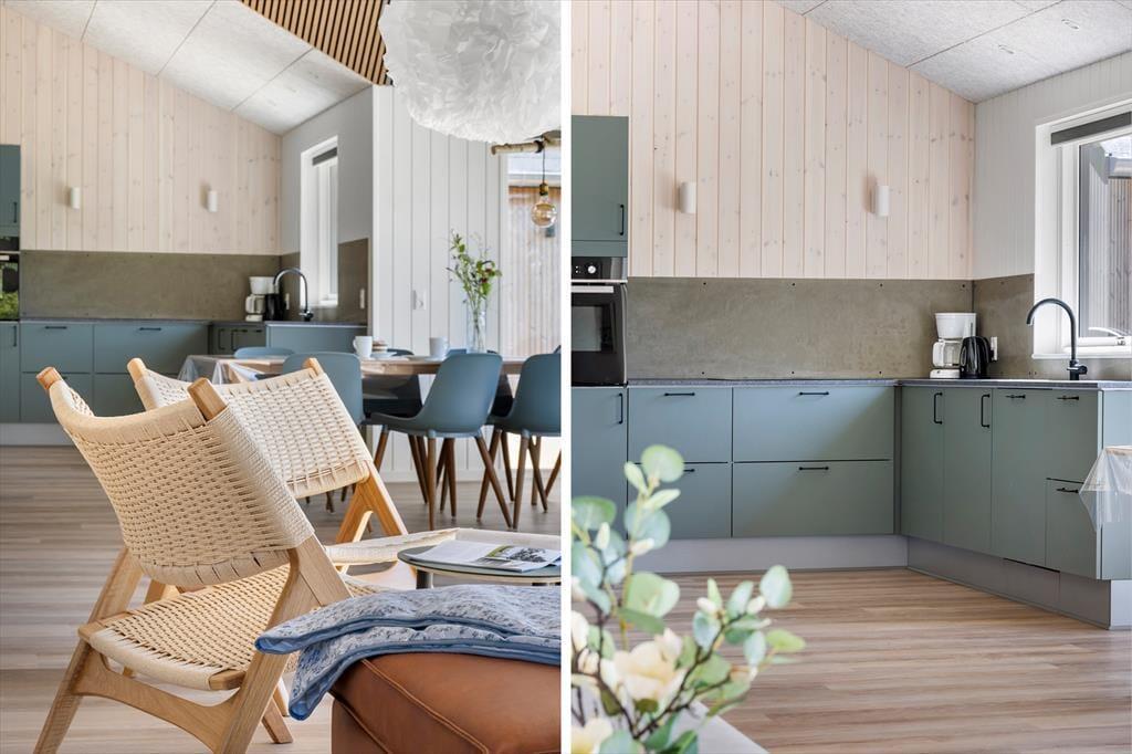Beim Betreten dieses wunderschönen Ferienhauses wirst du sofort von einer hellen und luftigen Atmosphäre empfangen. Die hohen Decken und großen Fensterfronten lassen das Tageslicht großzügig herein und holen die umliegende Natur direkt ins Wohnzimmer. Die offene, stilvolle Küche ist durchdacht gestaltet – funktional und ästhetisch zugleich – und bietet reichlich Platz, damit alle gemeinsam kochen und essen können. Während das Essen langsam gart, kannst du dem Gespräch am Esstisch folgen oder dich mit einem Glas Wein auf das Sofa zurückziehen und den Blick in den Garten genießen. An kühleren Tagen sorgt der Brennofen für eine angenehme Wärme, und wenn der Spieltrieb erwacht, lädt der Aktivitätsraum mit Billardtisch zu vergnüglichen Abenden voller Spaß und Lachen ein.