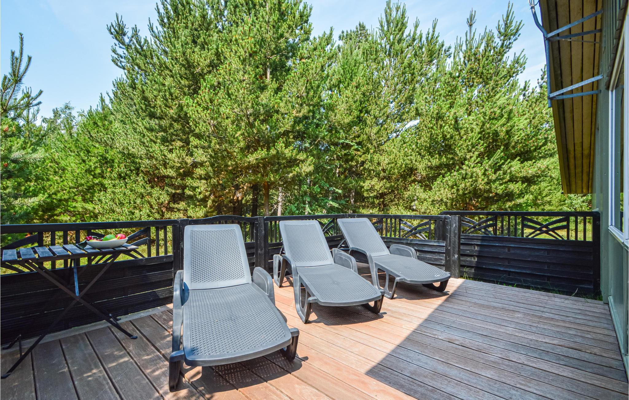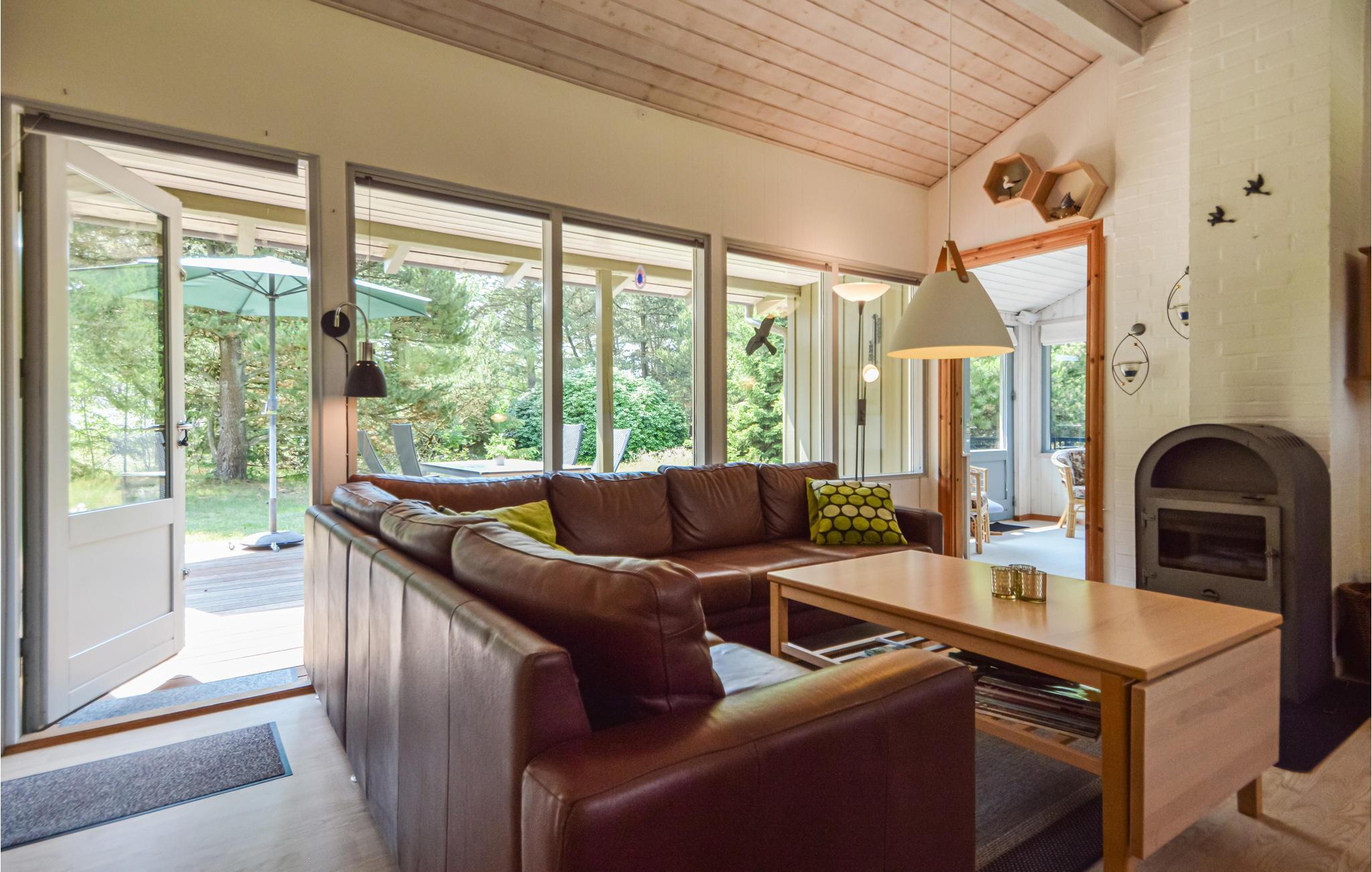 Im Innenraum ist das Haus heimelig eingerichtet, mit warmer und heller Atmosphäre, ausgerüstet mit moderner Küche kombiniert mit gemütlichem Wohnzimmer. Zudem gibt es auch einen weiteren Raum, mit bequem Sitzmöglichkeiten, und einer Fensterfront, der ideale Verhältnisse zum Lesen bietet. Am Haus gibt es auch eine schöne, offene Terrasse mit Grillmöglichkeiten an warmen Sommerabenden, während sich die jungen Gäste mit Schaukel und Sandkasten beschäftigen.