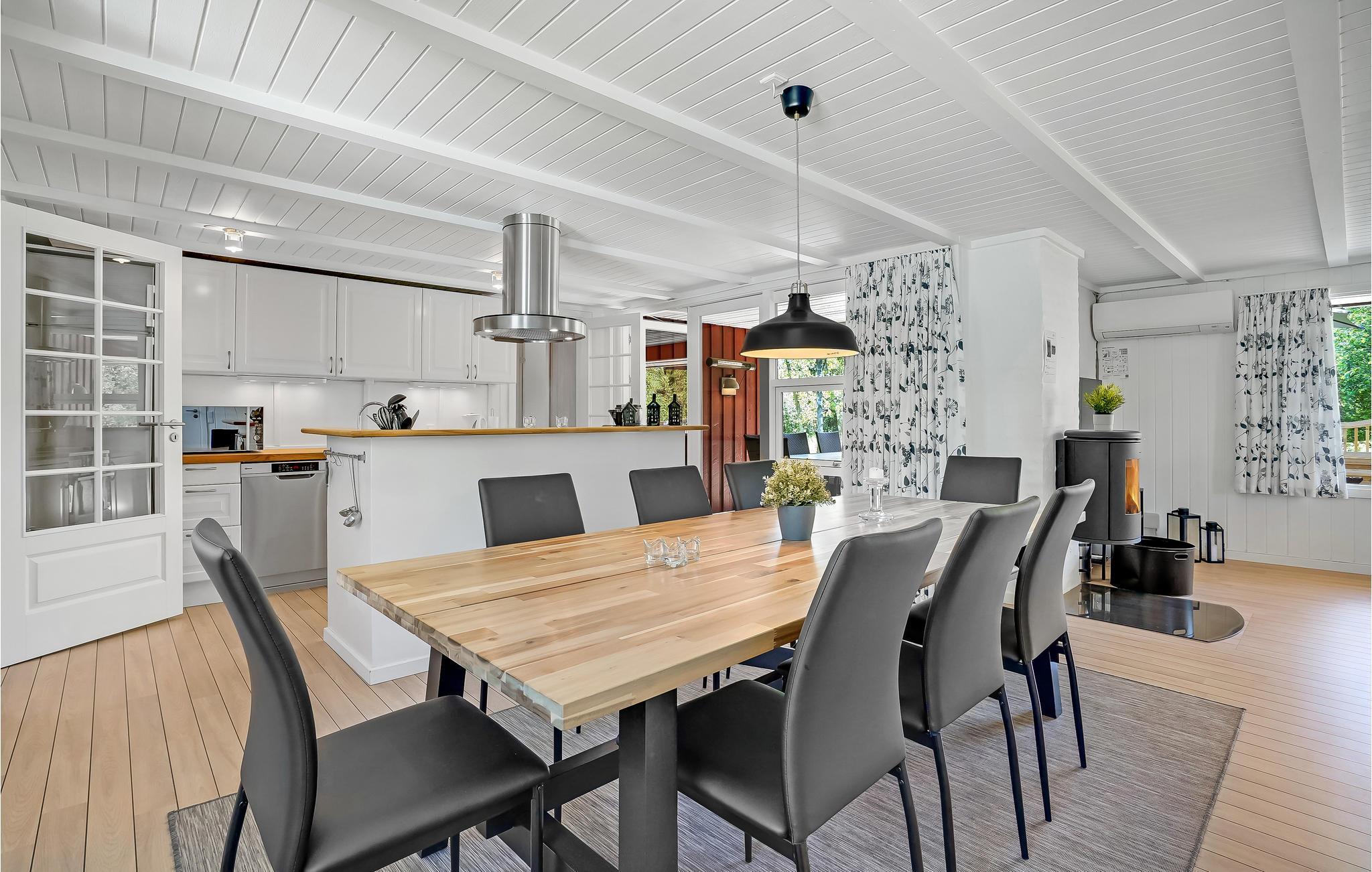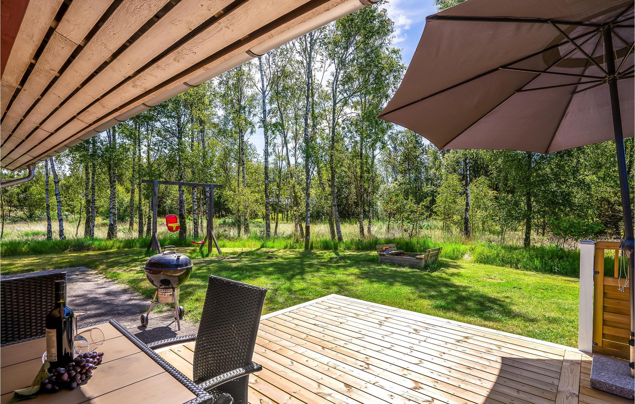 Dieses schöne und geräumige Haus in sehr ruhiger Umgebung liegt auf einem schönen Naturgrundstück mit vielen Bäumen. Zum Sønderstrand und zur Nordsee ist es nur ca. ein Kilometer und nach Havneby, wo sich der Golfplatz befindet, sind es ca. zwei. Durch die spezielle Einrichtung des Hauses wird jeder Quadratmeter genutzt. Der Wellnessbereich enthält einen Whirlpool, Sauna und Duschkabine. Das zweite Bad befindet sich in der Nähe der Schlafräume. Eine Ventilationsanlage sorgt in allen Räumen Tag und Nacht für frische Luft. Auf der windgeschützten Terrasse können Sie sonnenbaden und unter den Bäumen gibt es immer ein Schattenplätzchen.