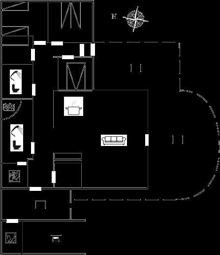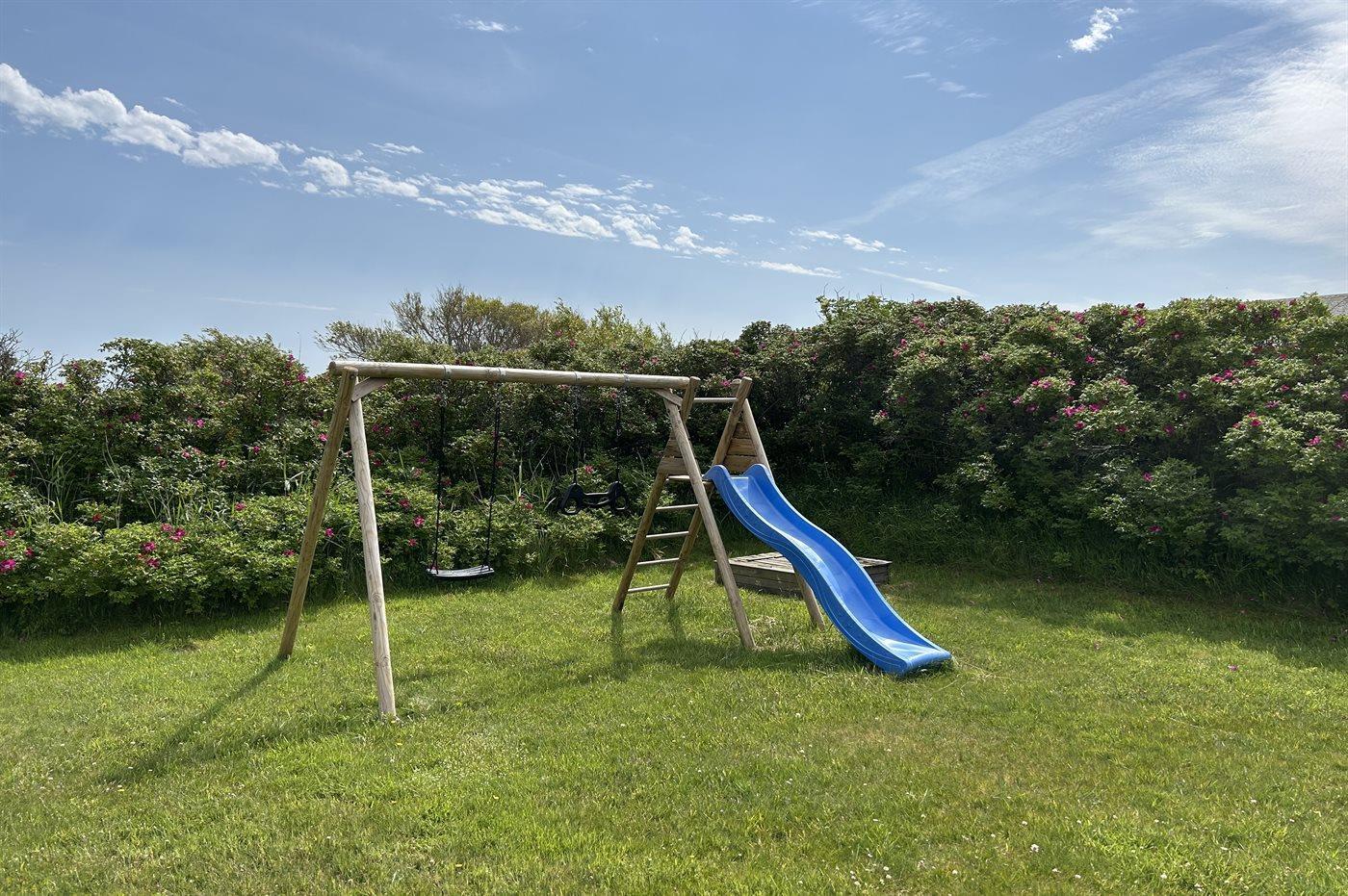 The holiday home is situated on a 1800 m² natural site. Situated 700 m from the sea. Situated 1500 m from inlet. Nearest shop is 400 m away. A 20 m² terrace belong to the holiday home. Furthermore the house has a 16 m² covered terrace. You find a tool shed. Swing. Sandbox. It is possible to prepare the food in the outdoor kitchen. Carport is at your disposal. Parking place by the holiday home.