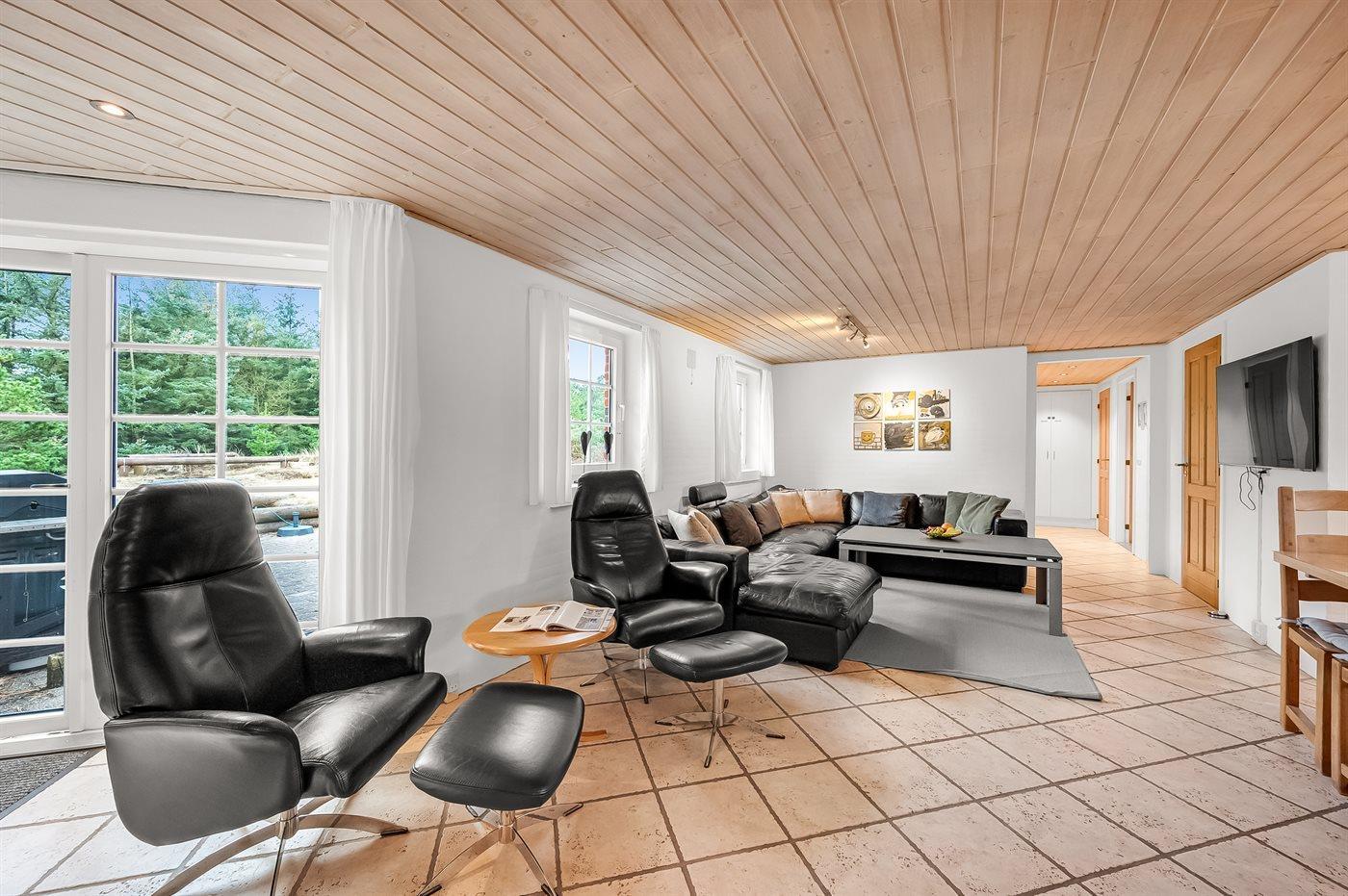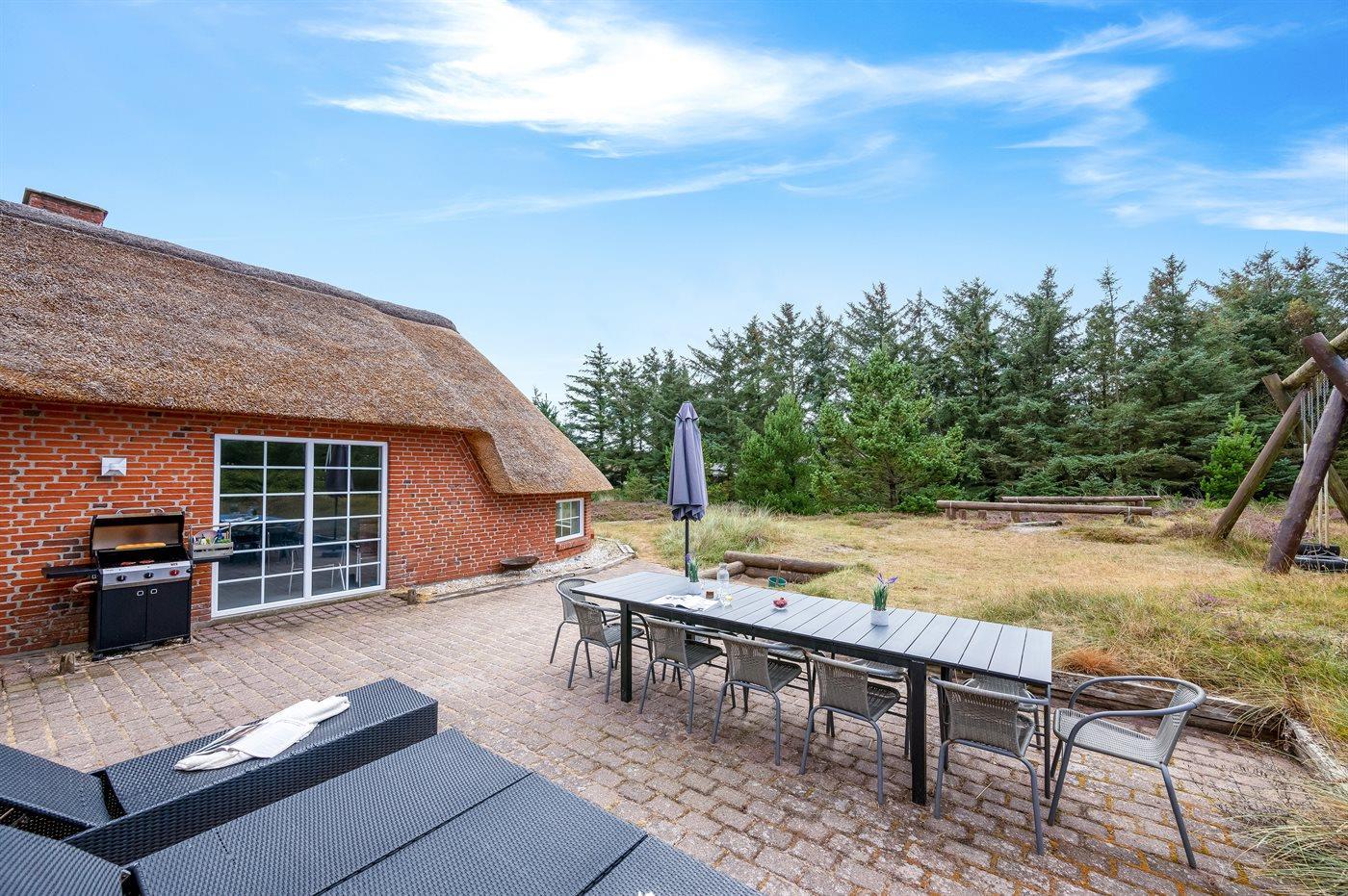The holiday home is situated on a 2050 m² Situated 900 m from the sea. Nearest shop is 2500 m away. A 60 m² terrace belong to the holiday home. Swing. Sandbox. Parking place by the holiday home.