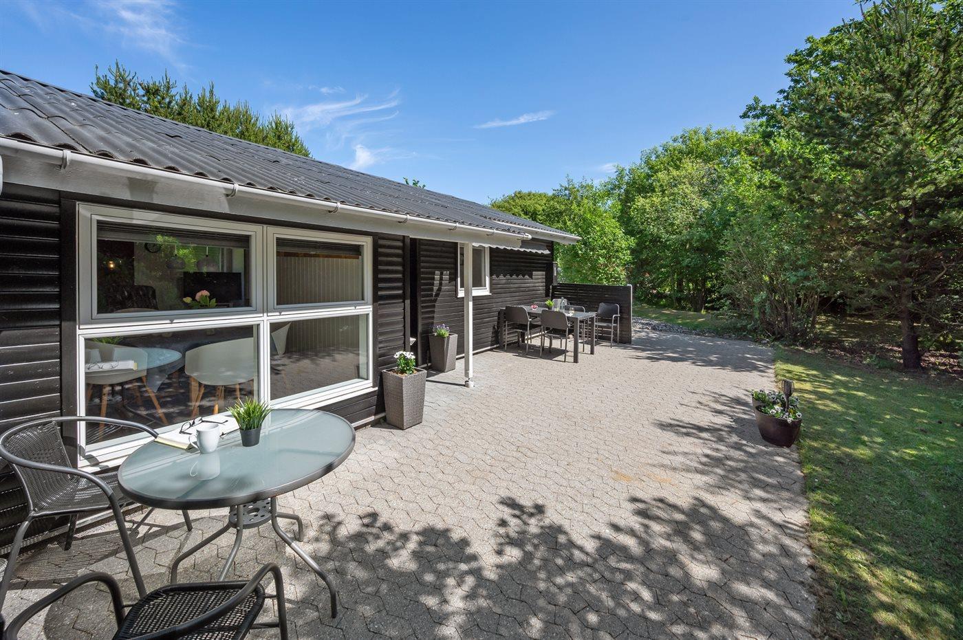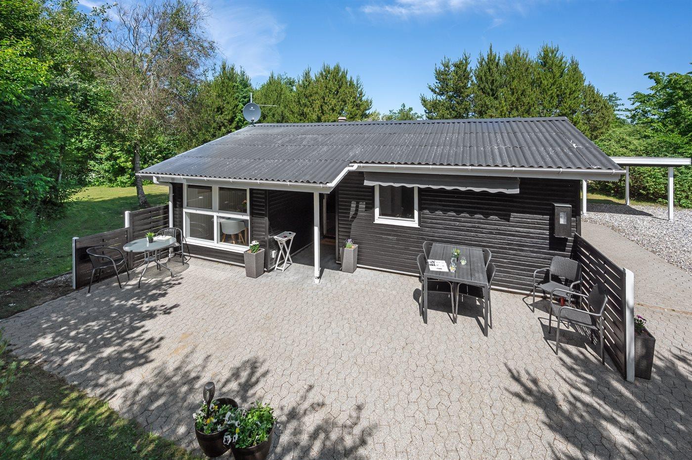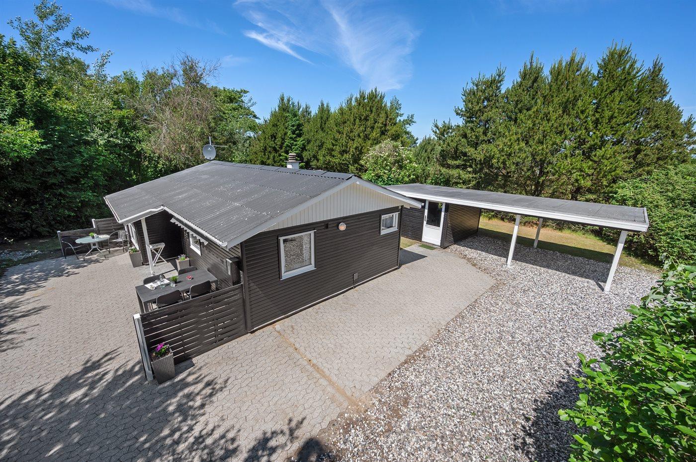The holiday home is situated on a 2300 m² garden site. Situated 1600 m from the sea. Nearest shop is 1400 m away. You will find a golf course in a distance of 600 m. A 40 m² terrace belong to the holiday home. Football goal. Carport is at your disposal. Parking place by the holiday home.