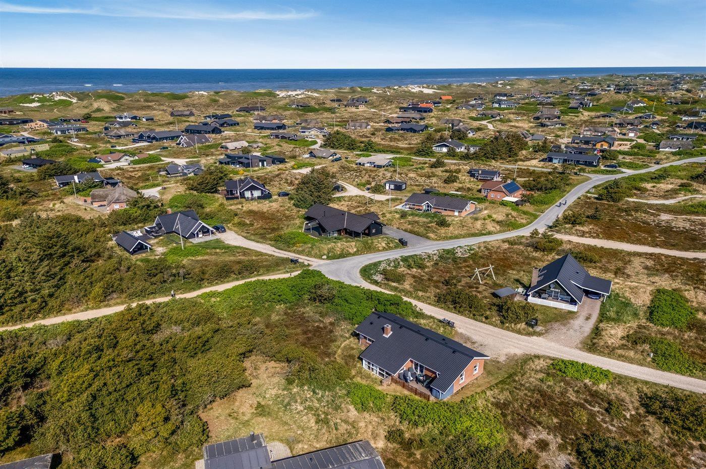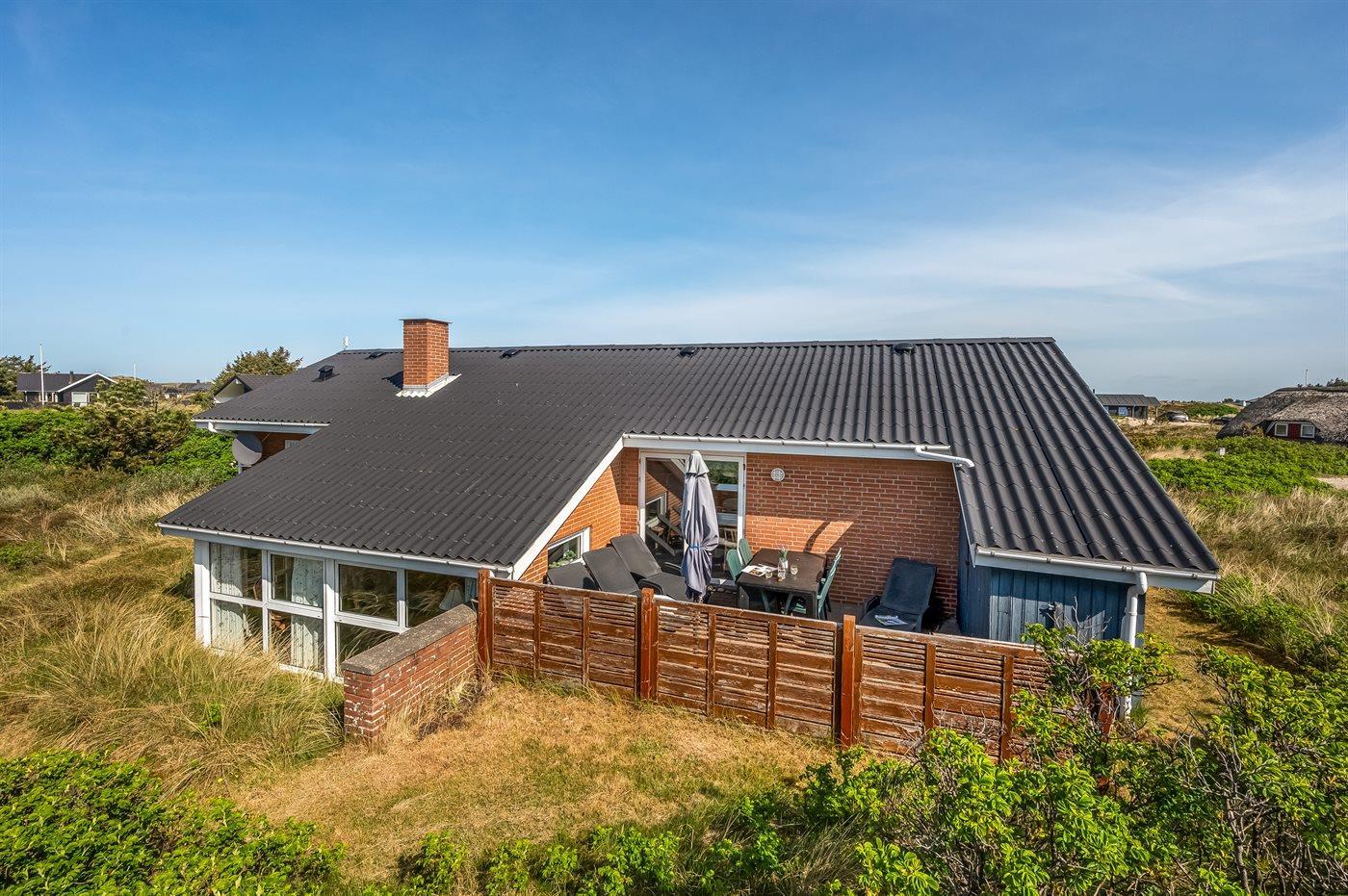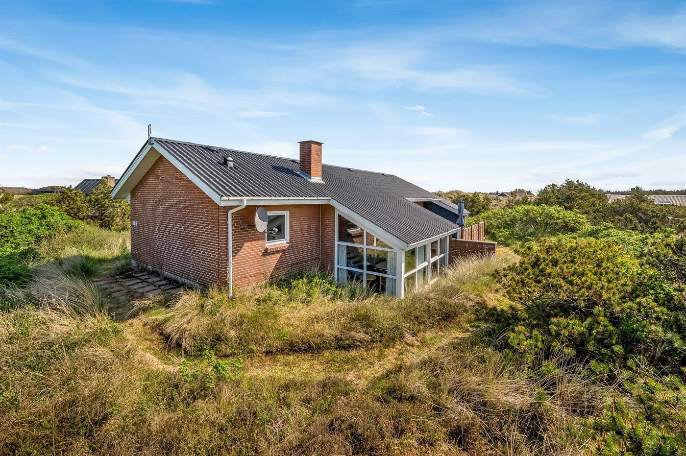 The holiday home is situated on a 1200 m² dune site. Situated 500 m from the sea. Nearest shop is 1000 m away. You will find a golf course in a distance of 2500 m. A 10 m² terrace belong to the holiday home. Hereof a total of 10 m² enclosed terrace. Parking place by the holiday home.