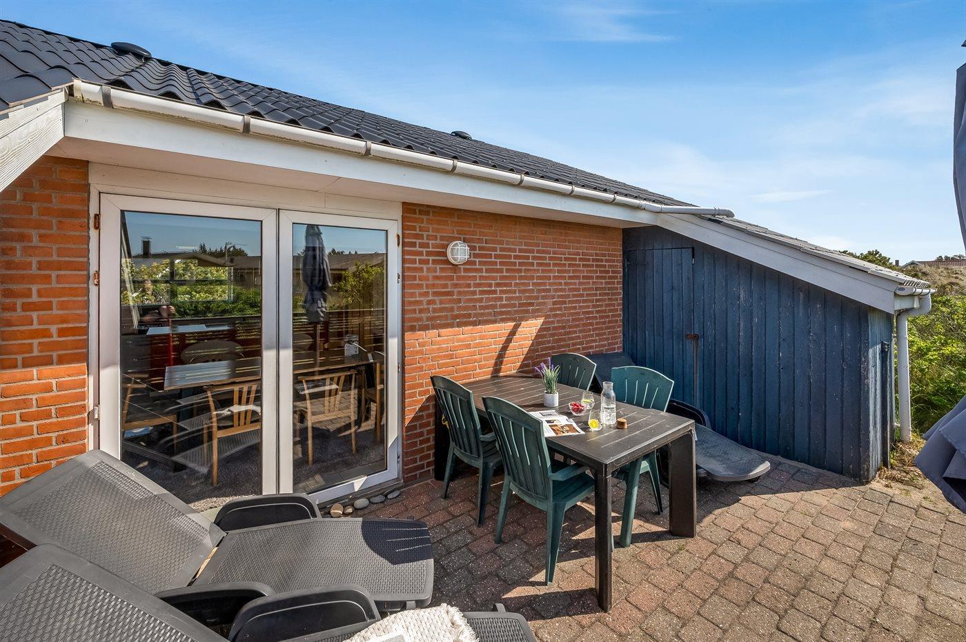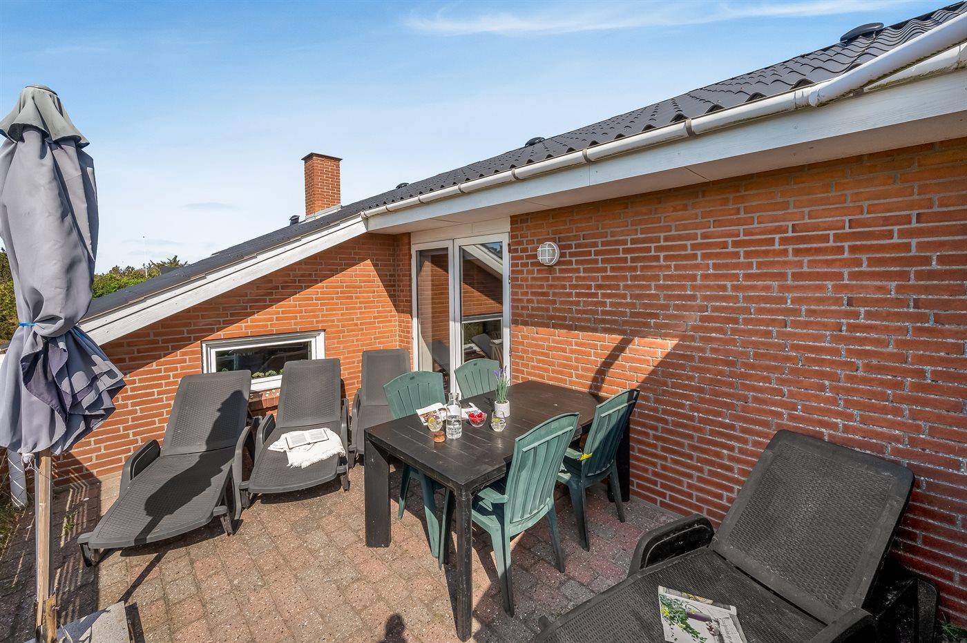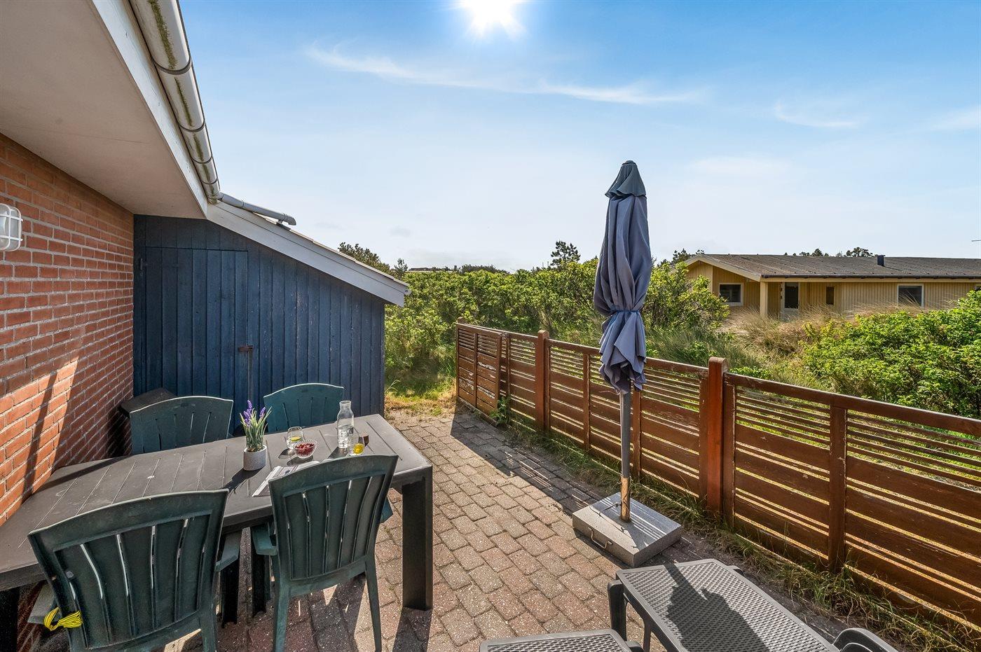 The holiday home is situated on a 1200 m² dune site. Situated 500 m from the sea. Nearest shop is 1000 m away. You will find a golf course in a distance of 2500 m. A 10 m² terrace belong to the holiday home. Hereof a total of 10 m² enclosed terrace. Parking place by the holiday home.