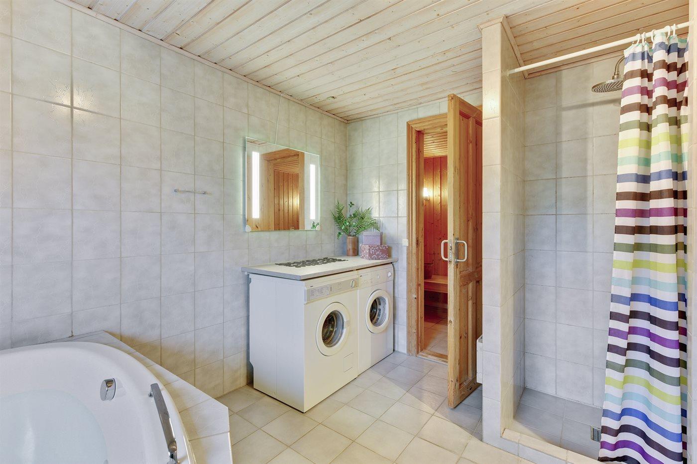 There is 1 bathroom with shower cabinet and 1 toilet.. There is floor heating in 1 bathroom. The sauna offers opportunity for relaxation.