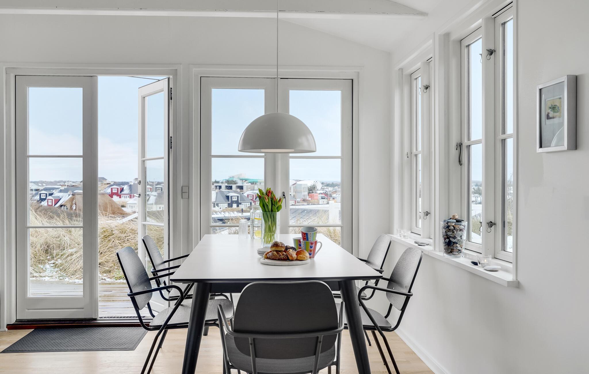 Das Haus ist hell und einladend und bietet Platz für die ganze Familie. Das Herzstück des Hauses ist die gemütliche Küche mit offenem Kamin und einem fantastischen Blick über die Dünen und Søndervig. Genießen Sie es, zu kochen, zu spielen oder einfach mit einem guten Buch und einem knisternden Feuer im Kamin zu entspannen. Morgens können Sie direkt auf die schöne Terrasse gehen und Ihren Morgenkaffee genießen, während Sie die Aktivitäten und Ausflüge des Tages planen. Von der Terrasse und dem Grundstück aus können Sie auch den herrlichen Panoramablick auf Søndervig bewundern. Lassen Sie Ihren Blick schweifen und spüren Sie die Ruhe.