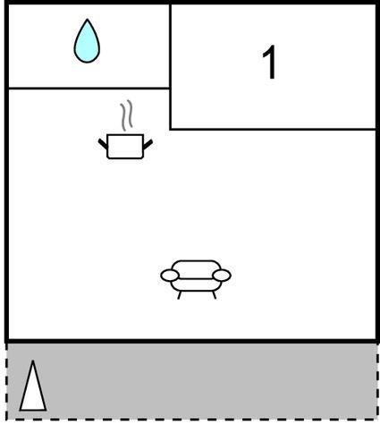 Wohnraum/Küche - 1 Schlafmöglichkeit. (Schlafsofa,Matratze,Sonstiges).