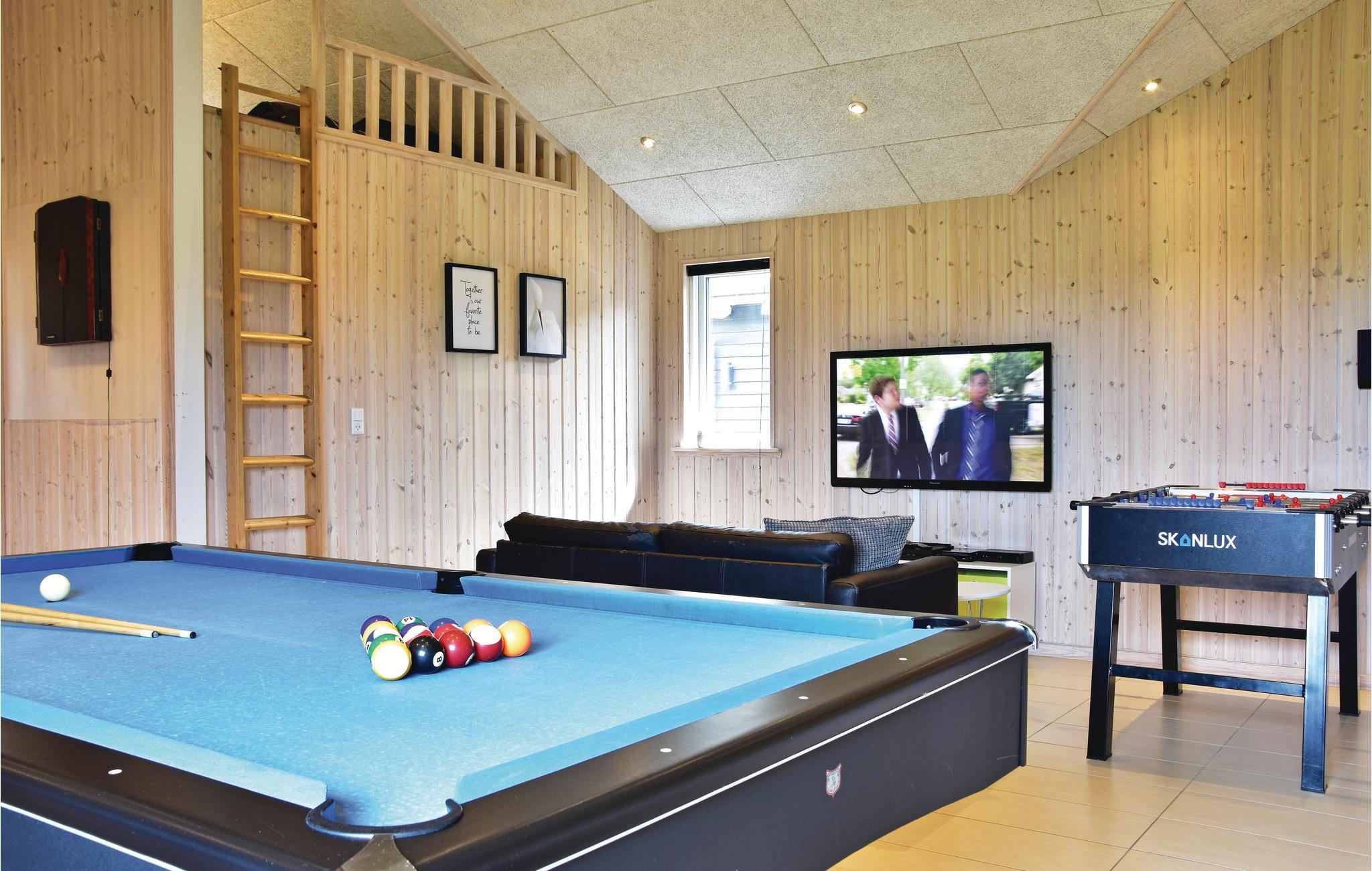 Eingerichtet für 18 Personen, enthält es 7 Schlafzimmer in 2 Bereichen und einen Hems mit 4 Schlafplätzen. Es gibt drei Badezimmer, eine große, gut ausgestattete Küche, ein helles Wohnzimmer und ein Spielzimmer mit Darts, Tischtennis, Wii, eine Bar für herrliche Drinks, Billard und mehr. Im schönen Poolraum sind Rutsche, 4-Personen-Whirlpool und Sauna untergebracht.