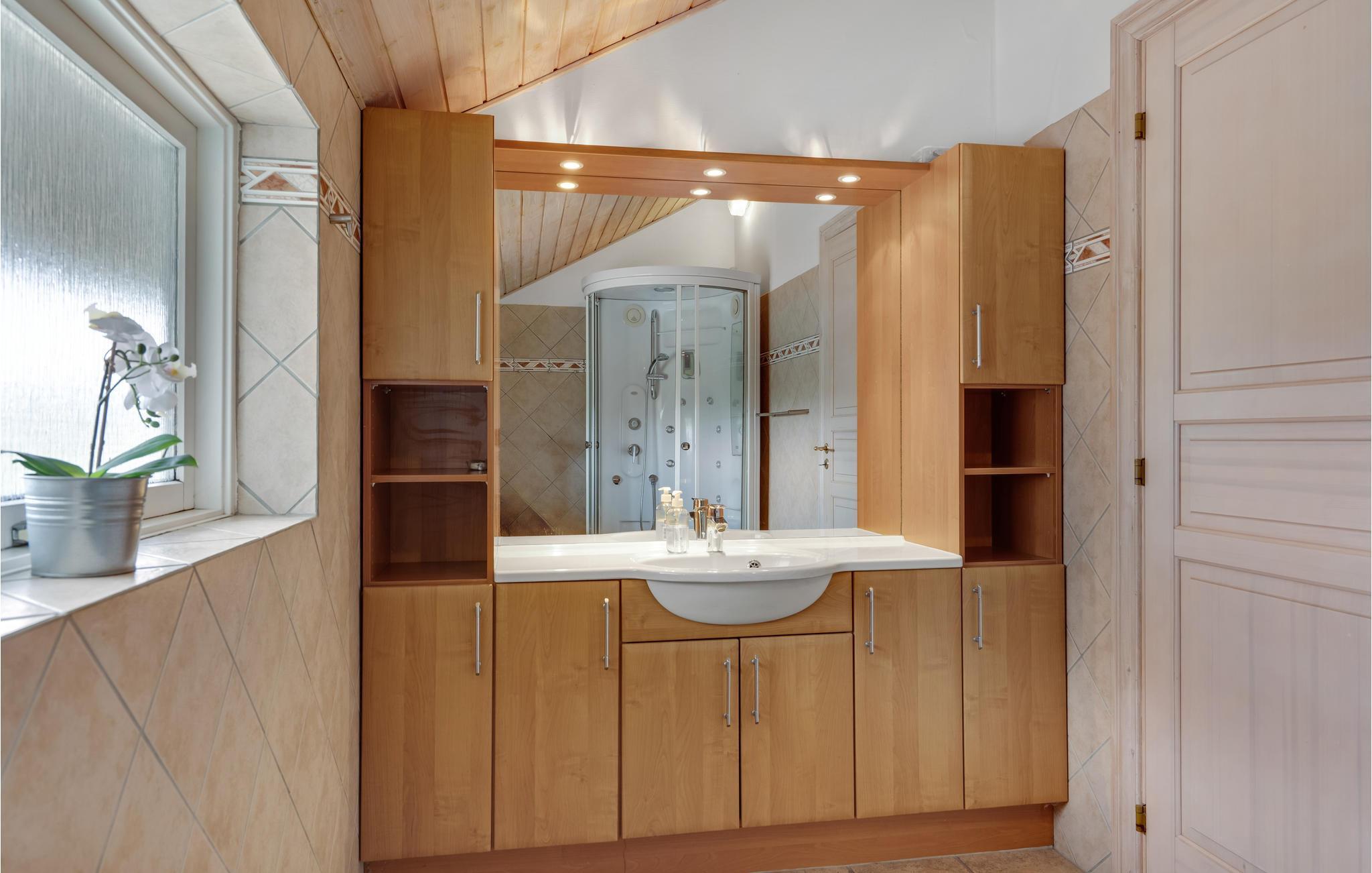 Verwöhnt werden Sie im großen Poolraum: Es gibt einen Swimmingpool, einen Whirlpool für 4 und eine Sauna. Insgesamt sind im Haus 6 gute Schlafzimmer und 2 Badezimmer. Das Wohnzimmer ist zur Küche offen, ein Kaminofen wärmt diesen Raum und sorgt zudem für viel Behaglichkeit.
