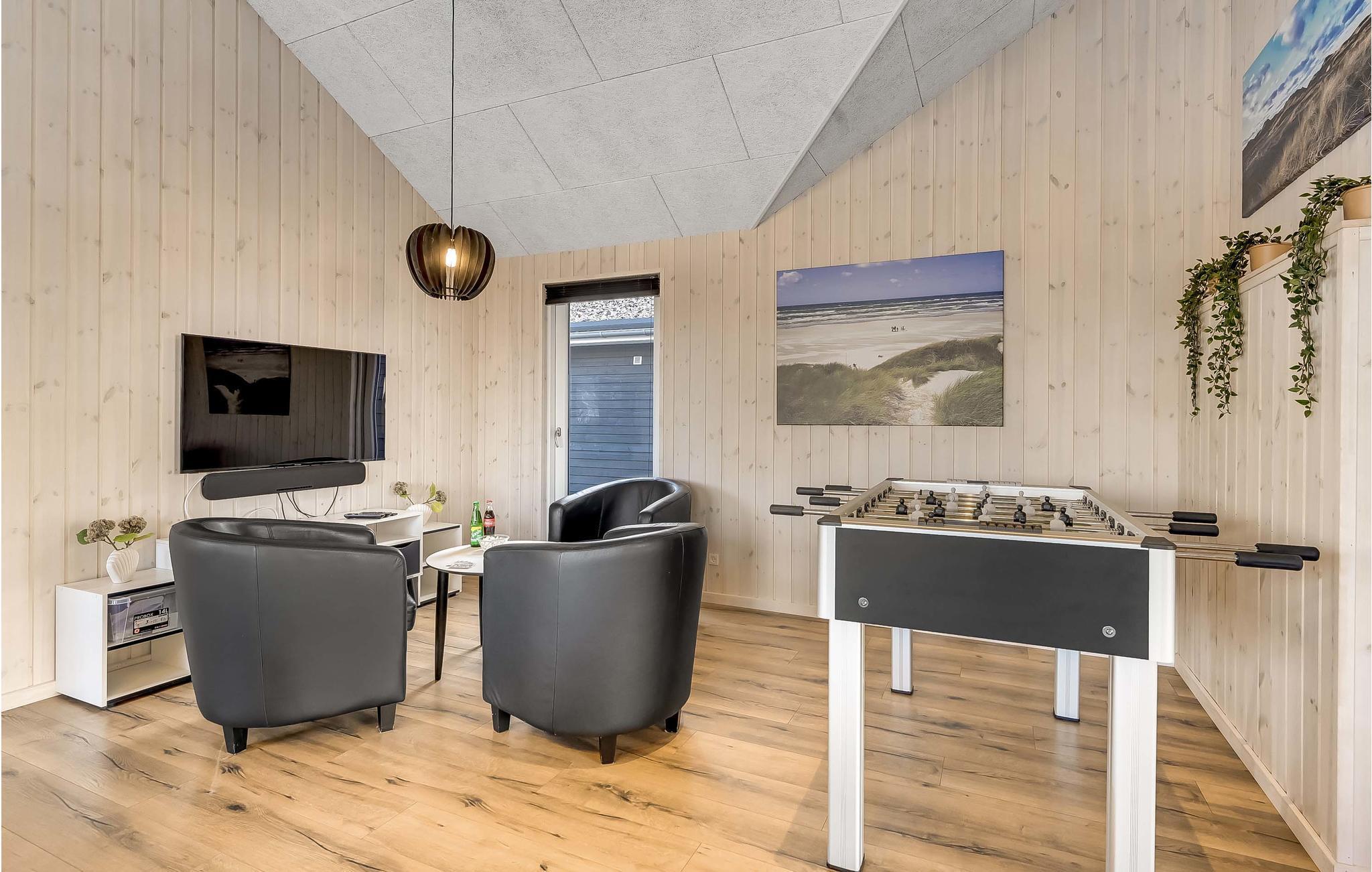 Dieses geräumige und luxuriöse Ferienhaus mit Pool liegt in der Nähe des beliebten Ferienorts Søndervig ist 2020 erbaut. Hier wohnen Sie in unmittelbarer Nähe der atemberaubenden Nordsee mit seinen weißen Sandstränden. Das Ferienhaus bildet mit zahlreichen Aktivitätsgelegenheiten den idealen Rahmen für den Urlaub einer großen Familie oder den mehrerer Familien.