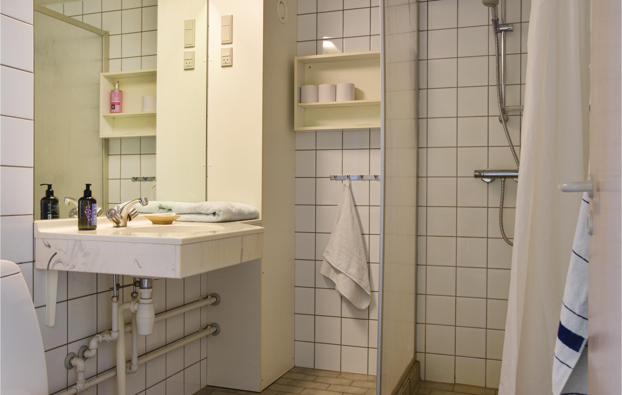 Die Wohnung befindet sich im ersten Stock und ist gut eingerichtet mit einem kombinierten Wohnzimmer und Küche, von wo aus Sie Zugang zum überdachten Balkon haben. Vom Balkon haben Sie Aussicht auf den Fjord. In der Wohnung gibt es ein Badezimmer mit Dusche und ein Schlafzimmer mit zwei Einzelbetten.