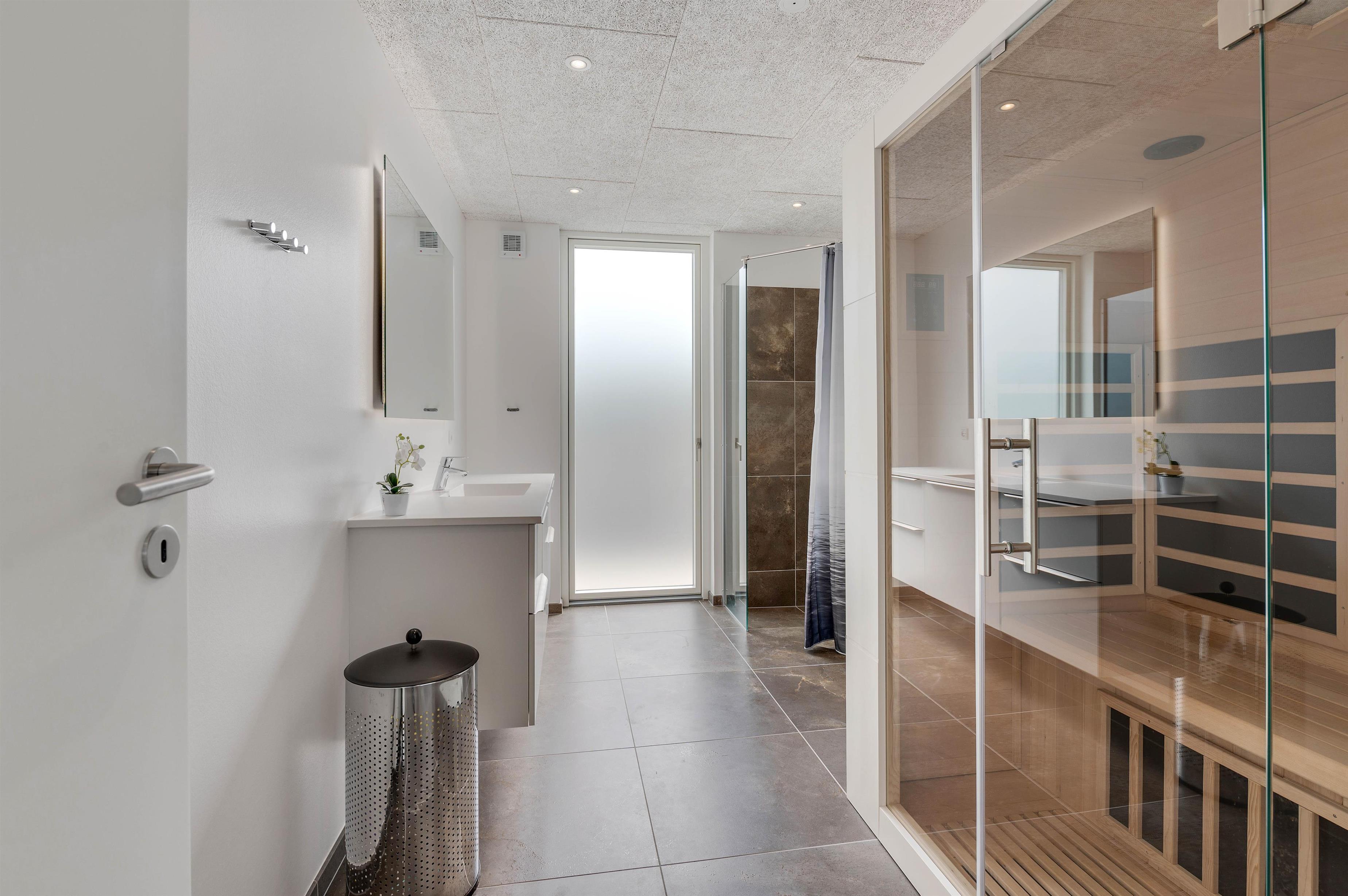 On less clement days, make yourself comfortable on the sofa with a good book and a hot cup of tea. A wood-burning stove provides both ambiance and warmth. Additionally, an energy-efficient heat pump ensures a pleasant indoor climate year-round. Both bathrooms feature underfloor heating, and the larger bathroom includes a sauna where you can recharge and truly unwind.