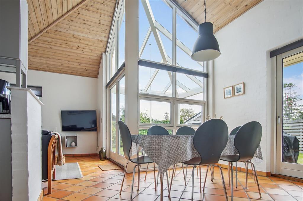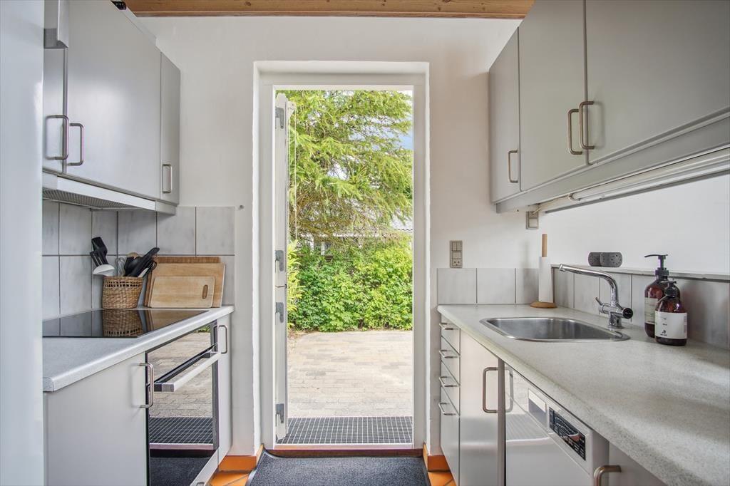 Die Terrasse und der Garten sind ideal, um das Leben unter freiem Himmel zu genießen. Beginnen Sie den Tag mit einer Tasse Kaffee auf der Terrasse und lauschen Sie dem Gesang der Vögel, oder entspannen Sie bei einem Grillabend, während die Sonne über den grünen Wiesen untergeht. Nur einen kurzen Spaziergang entfernt finden Sie den schönen Saksild Strand, wo Sie schwimmen, ein Eis genießen oder mit den Kindern Sandburgen bauen können. Wenn Sie etwas mehr Spaß haben möchten, liegt Dänemarks älteste Minigolfbahn in der Nähe – perfekt für eine lustige Familienaktivität oder einen freundschaftlichen Wettkampf.