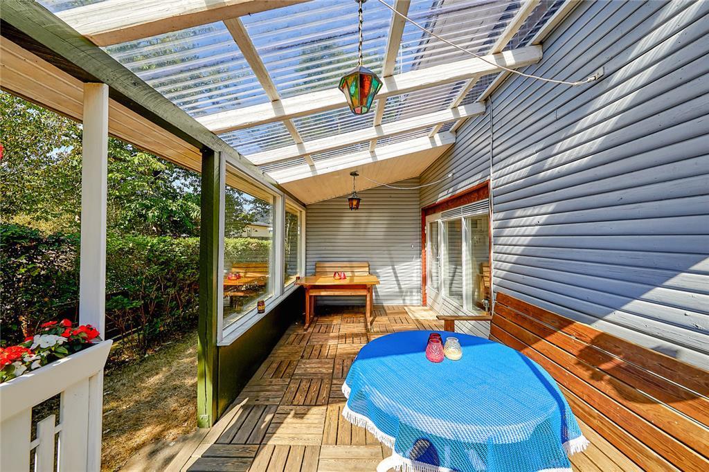 Draußen gibt es eine schöne überdachte Terrasse mit einem geschlossenen Teil. Außerdem gibt es einen gemütlichen Sonnenhof, wo Sie ganz ungestört sitzen können.