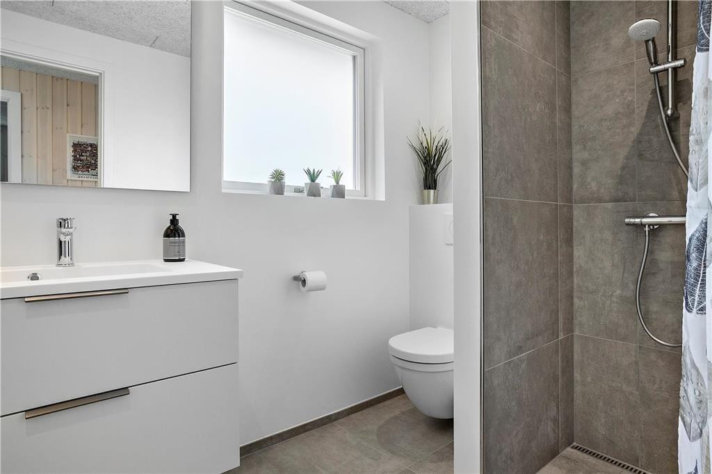 In jedem der beiden Enden dieses wunderschönen Urlaubsdomizils ist ein ansprechendes, stilvolles Badezimmer platziert.