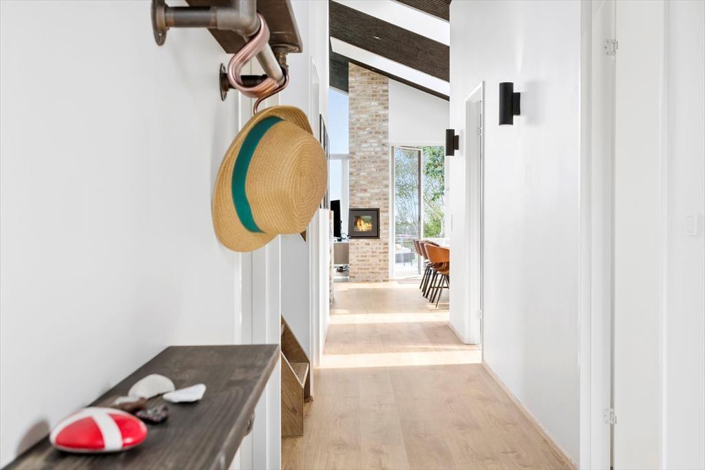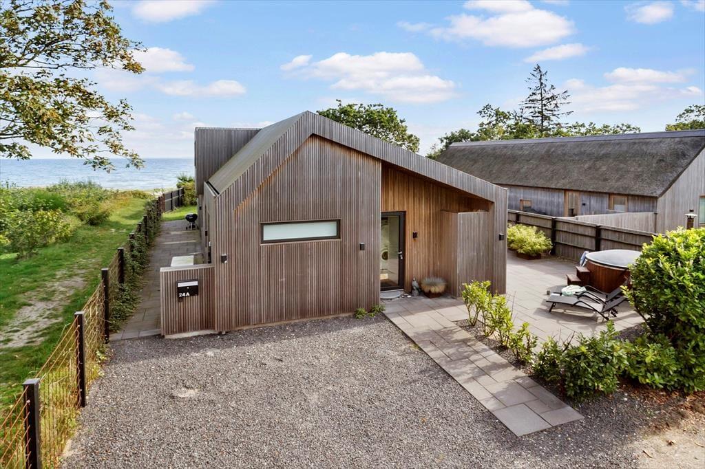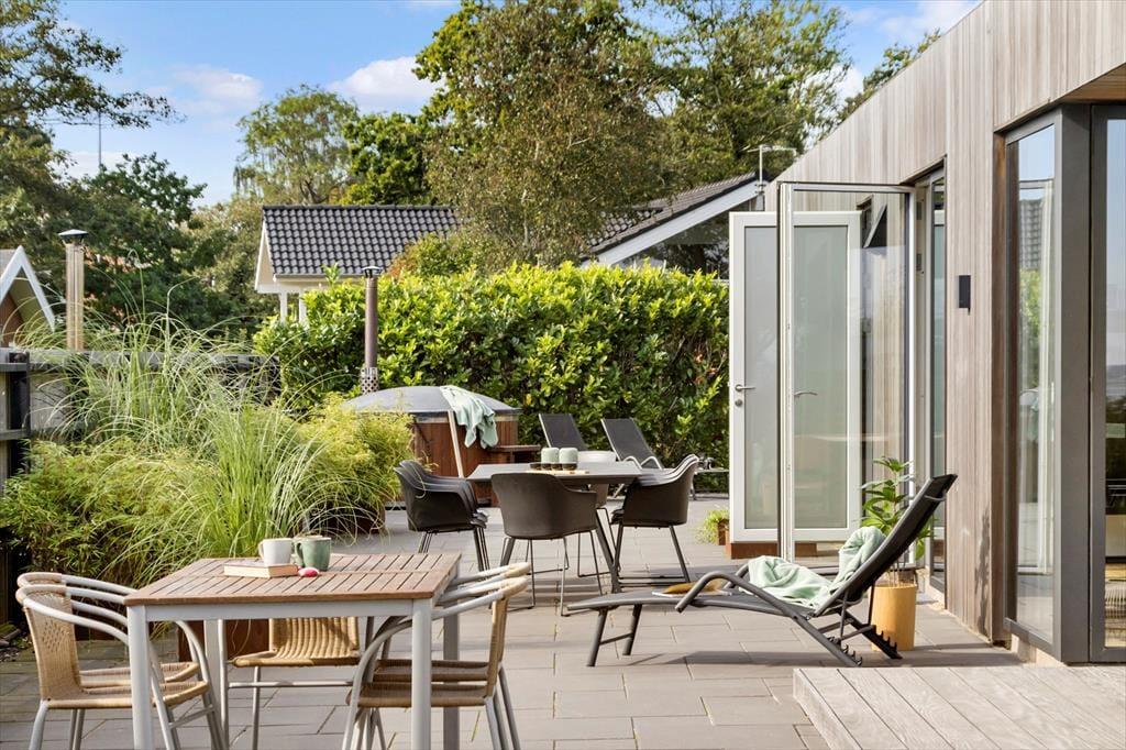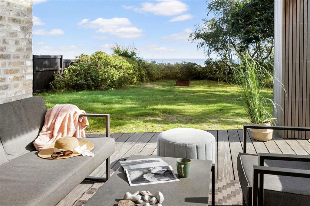 Sie wohnen praktisch direkt am Strand! Wenn Sie Ihre Urlaubstage nicht nur an einem der besten Badestrände Ostjütlands verbringen möchten, bieten sich Ihnen vielfältige Möglichkeiten, das Urlaubsleben, das Wetter und die Gesellschaft mit Ihren Lieben rund um das Ferienhaus zu genießen. Unter anderem erwartet Sie hier eine ansprechende Holzterrasse mit guten Gartenmöbeln, Liegestühlen, einem Sonnenschirm und ähnlichen Dingen. Im Garten treffen Sie auf eine kleine Lagerfeuerstelle. Die Sandkiste wird sich bei Ihren jüngeren Kindern großer Beliebtheit erfreuen. Der auf der teilweise überdachten Terrasse platzierte Gasgrill lädt zu stimmungsvollen Grillabenden ein. Auf der Terrasse finden Sie zu jeder Zeit ein schönes Plätzchen zum Lesen und zum Sonnen oder auch für ein kleines Nickerchen. Egal, wie Sie Ihre Zeit gerade verbringen, Sie werden stets mit einem Blick auf das Meer, den Strand und das Strandleben ringsum verwöhnt. An kühlen Abenden gibt es wohl kaum etwas Schöneres, als sich in geselliger Runde im warmen Wasser der schwedischen Badetonne niederzulassen. Eine Außendusche ist ebenfalls vorhanden.