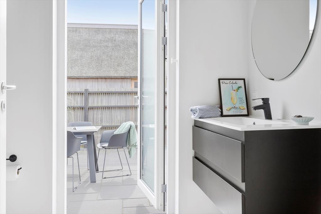 Willkommen in diesem herrlichen Ferienhaus, das unter anderem mit seiner einzigartigen Lage in der ersten Häuserreihe vor dem Saksild Strand begeistert. Wir freuen uns sehr darüber, Ihnen einen schönen Aufenthalt mit Ihrer Familie oder guten Freunden in diesem gemütlichen, modernen und richtig gut ausgestatteten Ferienhaus ermöglichen zu können. Das Haus beinhaltet drei gute Schlafzimmer und einen großen, attraktiven Schlafboden mit einem Doppelbett und Meerblick. Hinzu gesellen sich eine offene Küche, ein großer Wohnraum und zwei tolle Badezimmer, von denen eines mit einer Sauna ausgestattet ist. Bis zu acht Personen verleben in diesem Objekt unvergessliche Urlaubstage. Das Herzstück des Hauses bildet der große Küchen- und Essbereich. Die Küche beinhaltet alles, was eine moderne Familie für die Zubereitung der Mahlzeiten benötigt. Zu den Annehmlichkeiten zählen unter anderem ein Geschirrspüler, eine Mikrowelle, ein Wasserkocher und eine Kaffeemaschine. Den gesamten Tag hindurch genießen Sie in diesem Teil des Hauses einen schönen Tageslichteinfall und einen reizvollen Meerblick. An den offenen Küchen- und Essbereich schließt der Wohnraum mit seiner ansprechenden Sofagruppe, in der Sie es sich nach einem langen Tag am Strand gemeinsam gemütlich machen können. Auch hier werden Sie mit einem Blick auf das Meer verwöhnt. Zu entspannten Filmabenden lädt der im Wohnraum platzierte Fernseher ein. Da der Fernseher über Chromecast verfügt, können Sie über Ihr eigenes Tablet oder Smartphone Ihre privaten Streamingabos zum Streamen von Filmen und Serien nutzen. Dänische, deutsche, schwedische und norwegische Sender können ebenfalls empfangen werden.