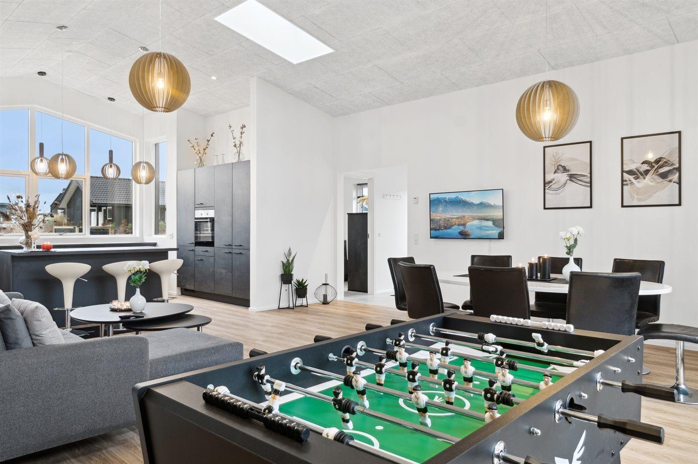Holiday home suitable for 12 persons . The holiday home is 133 m² and is build in 2024. No pets allowed. The holiday home is equipped with 1 energy-friendly air-to-water heat pump. There is floorheating all over the holiday home. The holiday home has washing machine. Tumble dryer. Freezer capacity of 90 litres. For the youngest ones there is 1 high chair.
