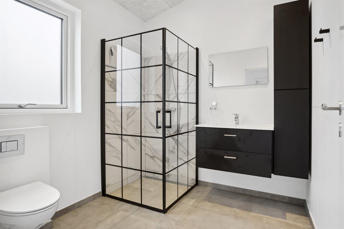 There are 2 bathrooms with shower cabinet and 2 toilets. There is floor heating in 2 bathrooms.