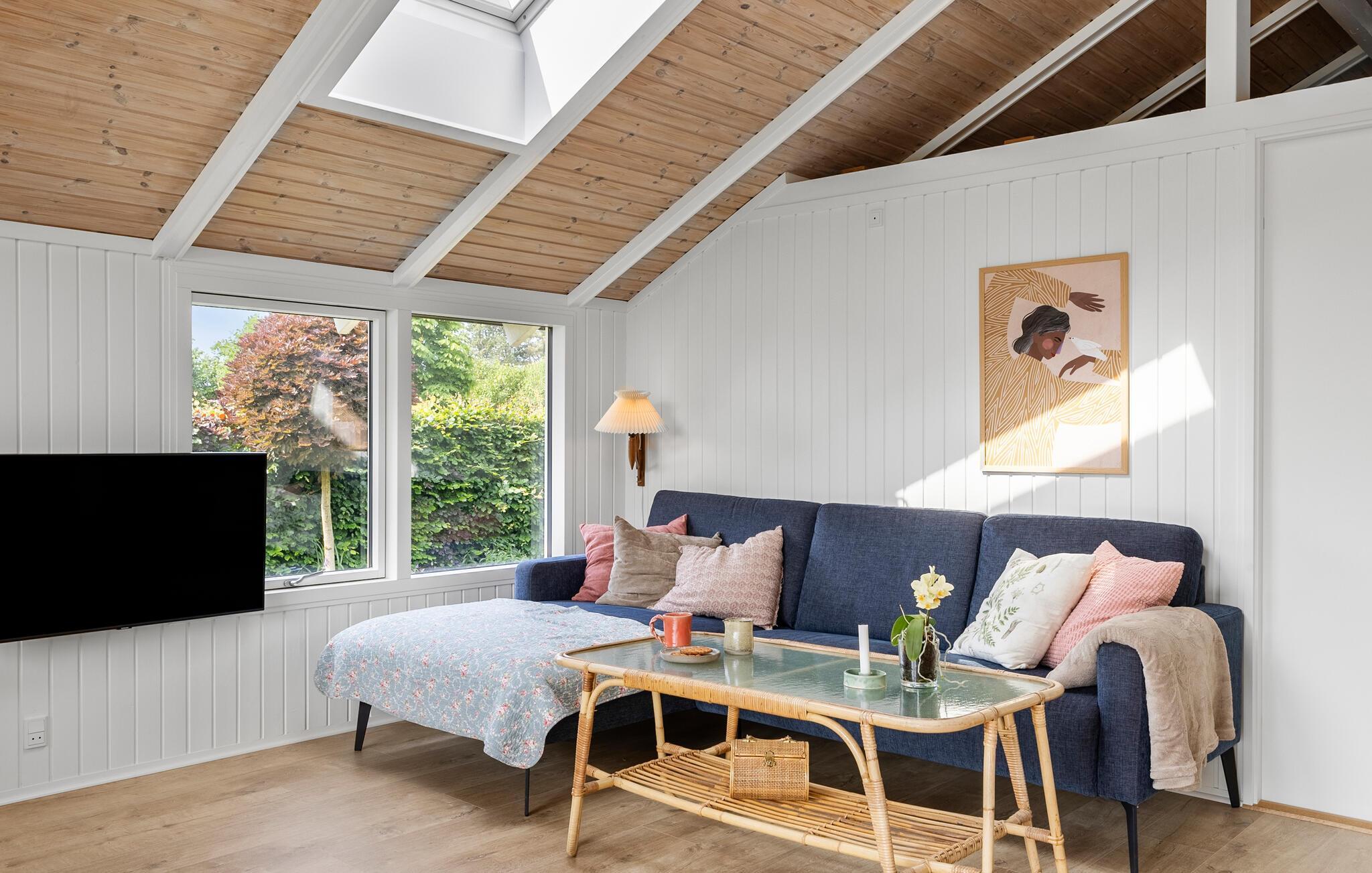 An der sanften, dänischen Ostseeküste finden Sie und Ihre Familie dieses schöne und gut ausgestattete Ferienhaus. Der Innenraum ist bis hin zum Dachgiebel offen, was eine geräumige, angenehme Atmosphäre schafft. Der Wohnbereich mit mehreren Fensterfronten bietet verschiedene Ecken, wo Sie sich beim Blick in den Garten entspannten können.