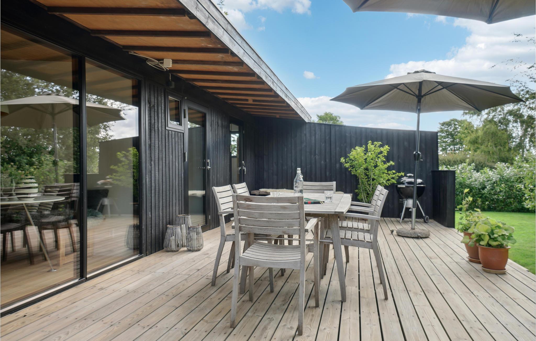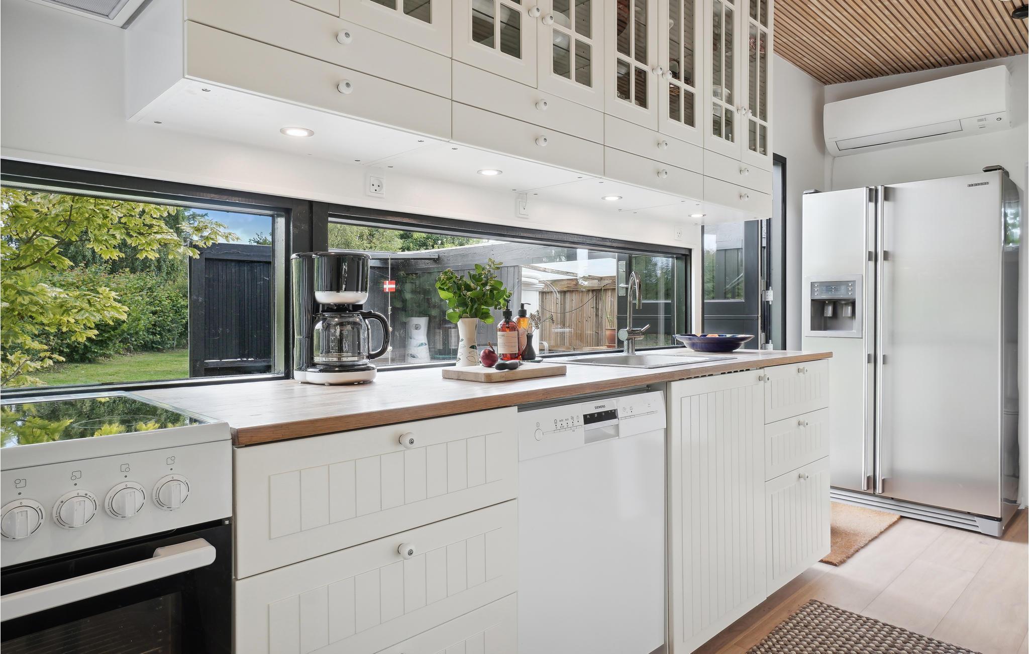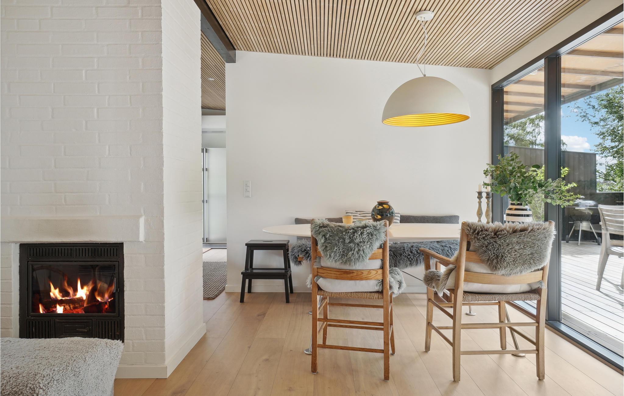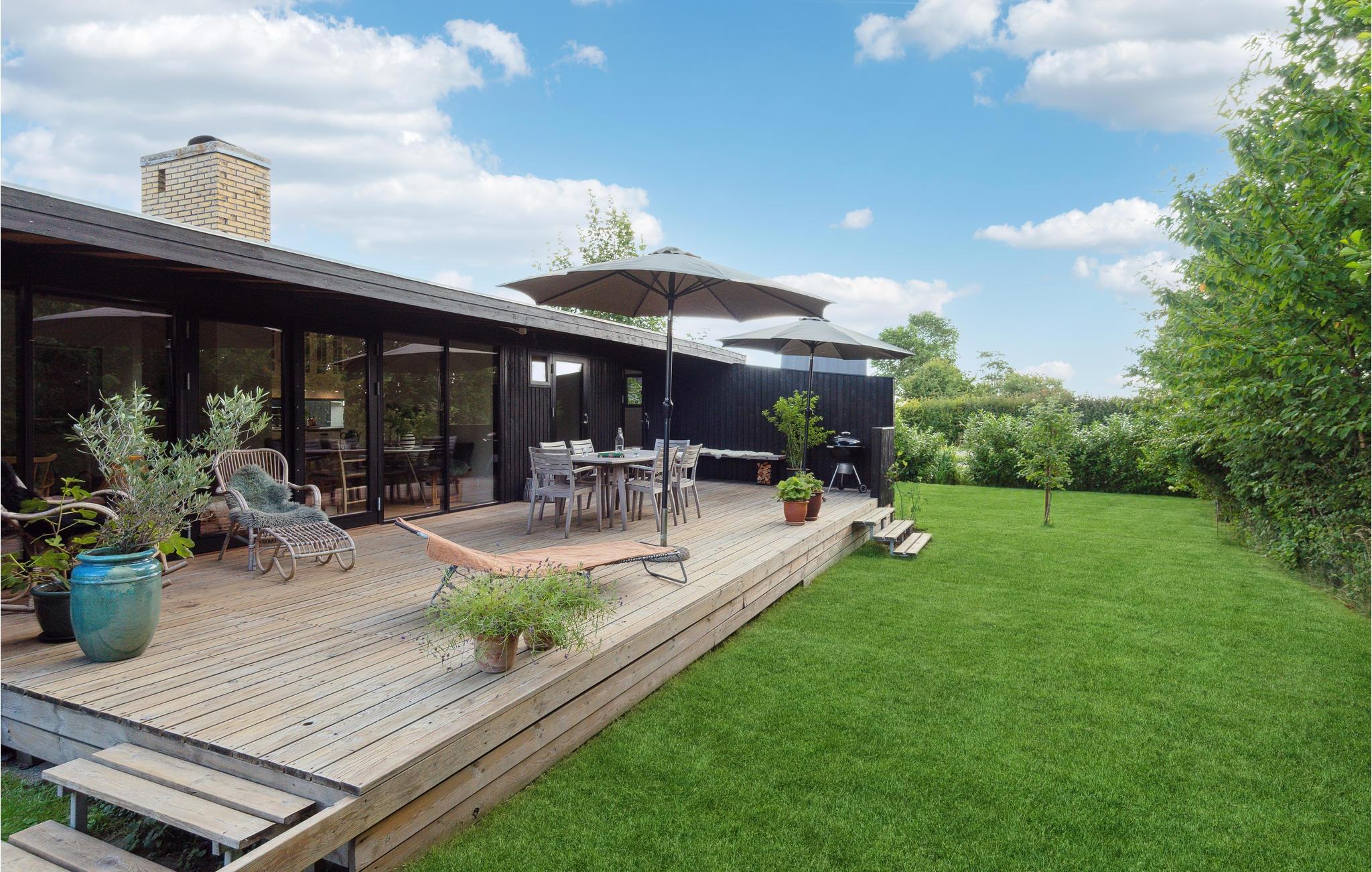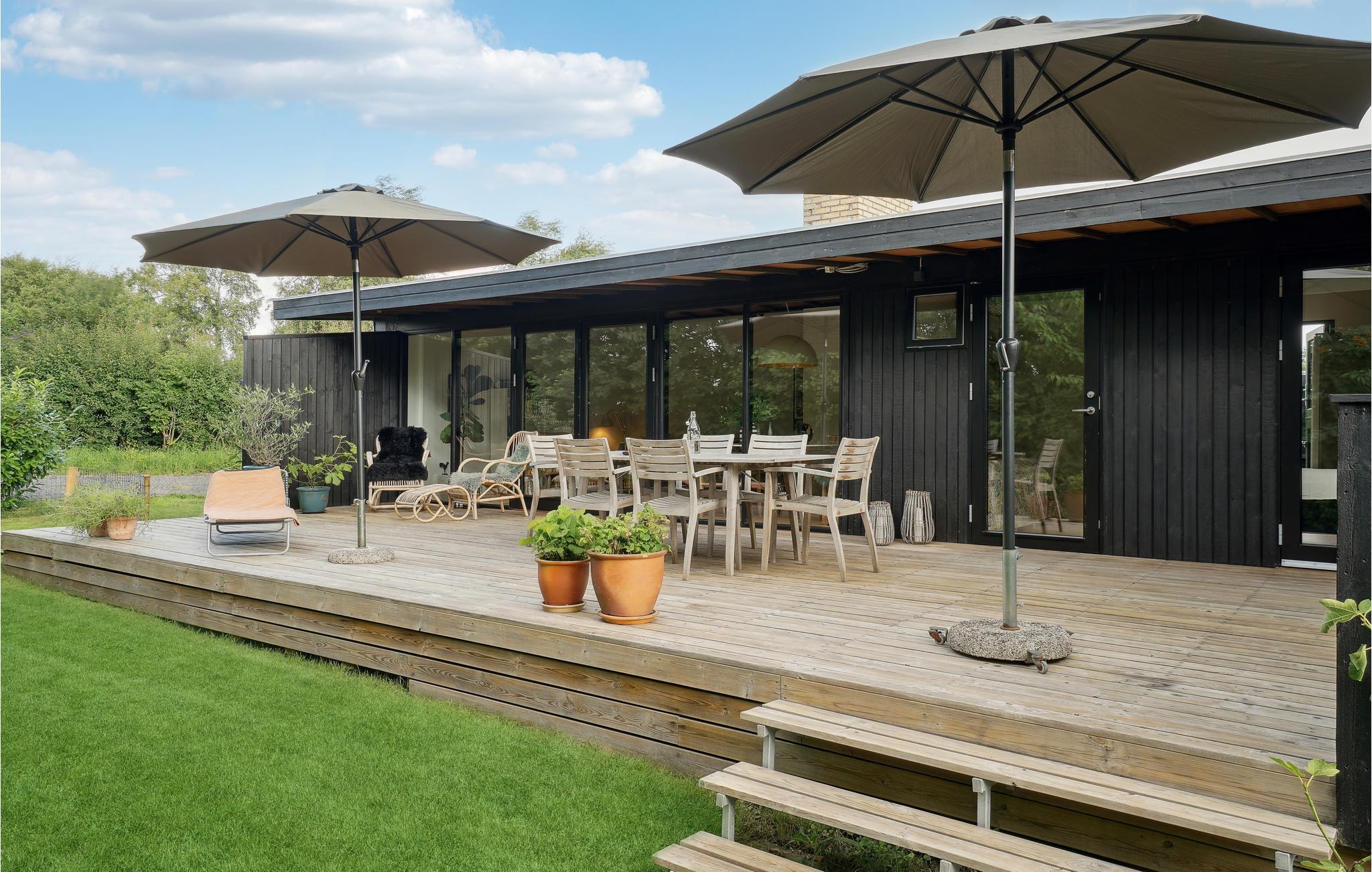 An der sanften Ostseeküste Jütlands heißt Sie dieses wunderschöne Ferienhaus willkommen. Es bietet ein hochwertiges, geschmackvolles Interieur im skandinavischen Stil, in dem Sie sich sofort wohlfühlen werden. Verbringen Sie gesellige Abende um den Esstisch bei leckeren Mahlzeiten und netten Unterhaltungen und machen Sie sich es in der kühlen Jahreszeit auf dem Couch mit der Urlaubslektüre bequem, während Sie den knisternden Geräuschen des Kaminofens lauschen. Bei schönem Wetter lädt die große Holzterrasse zu entspanten Stunden im Freien ein, während die Kleinen sich auf dem Rasen toben.