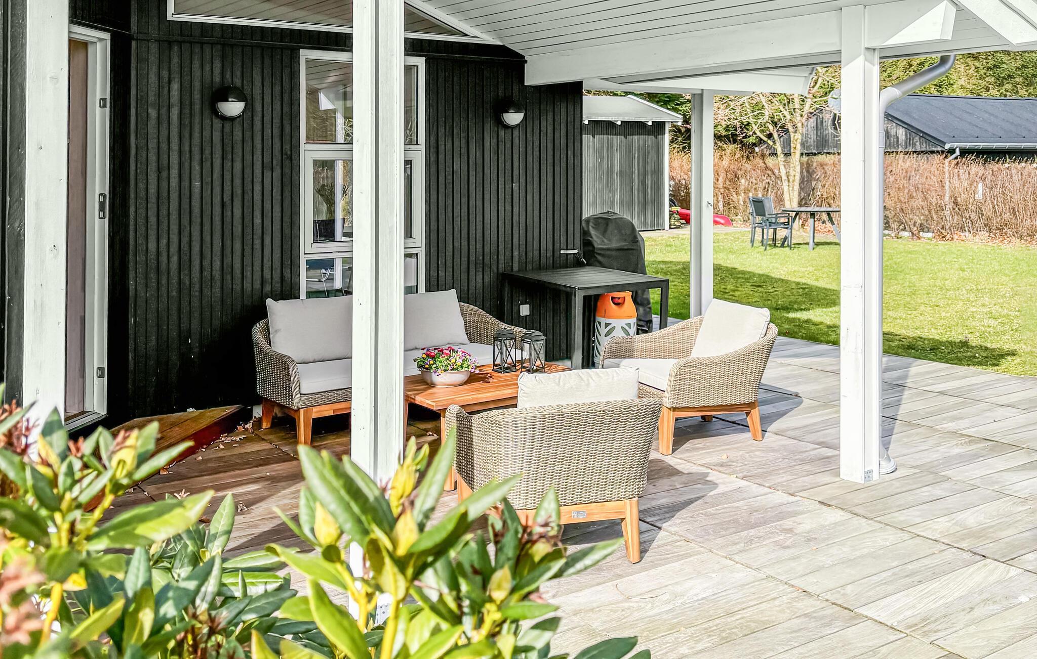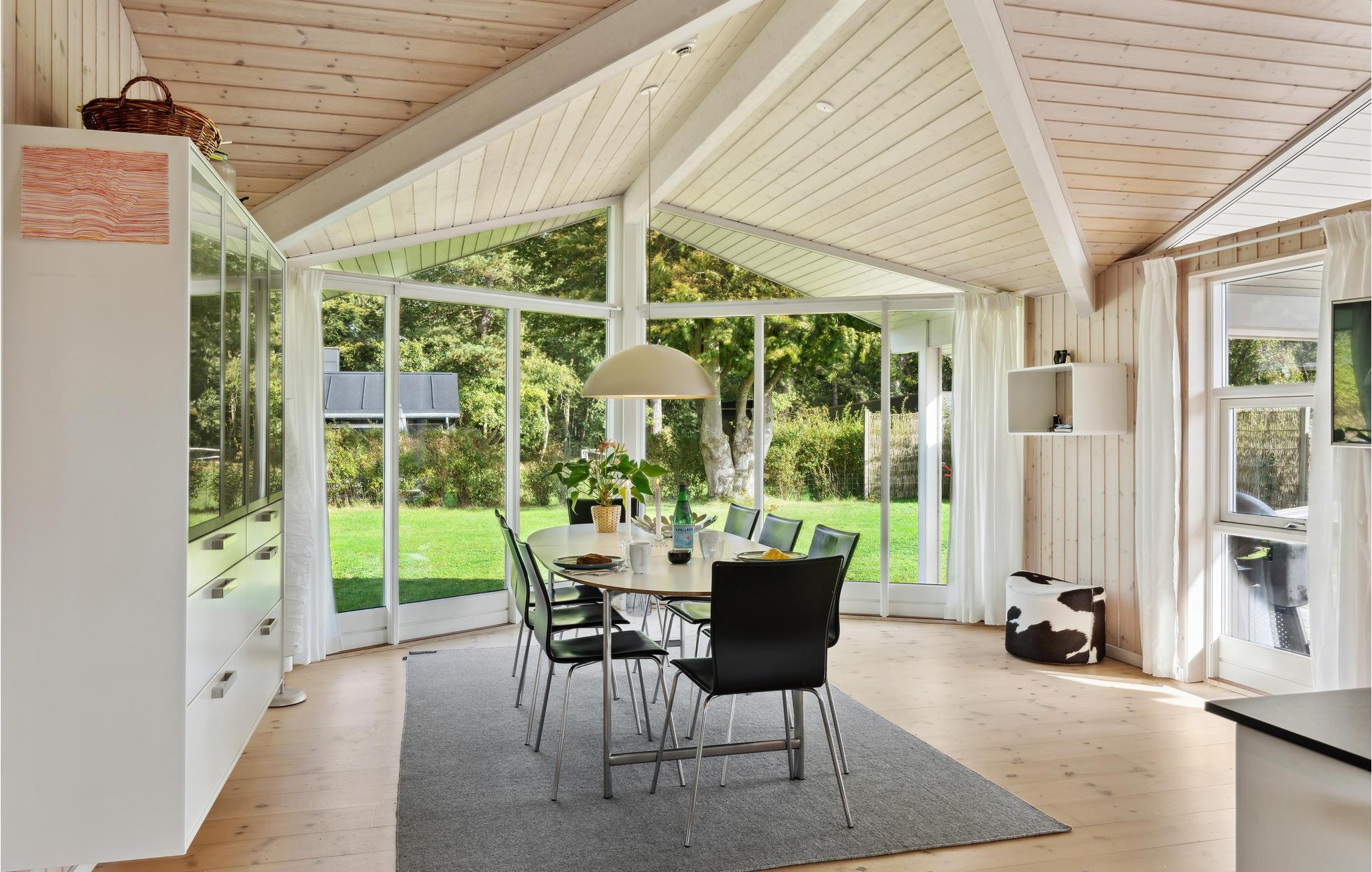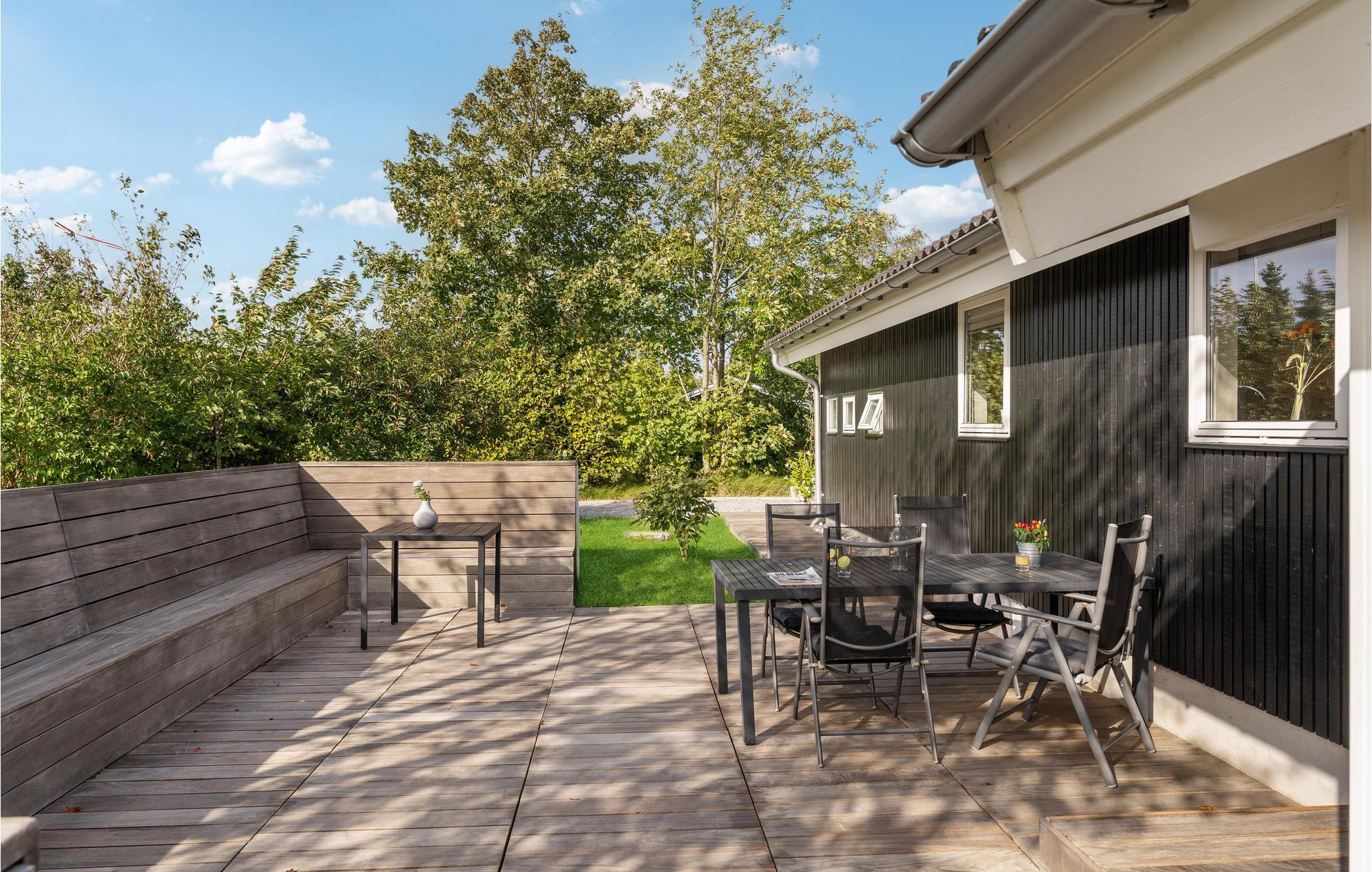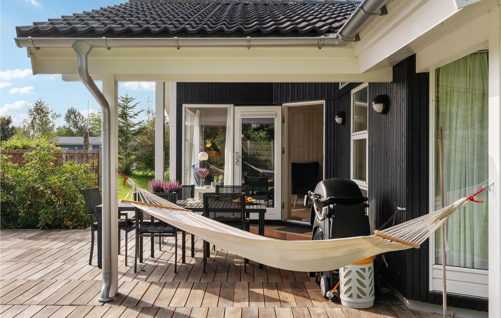 Es ist Zeit für Entspannung und Sie suchen das ideale Ferienhaus für Ihren Familienurlaub? Dann sind Sie hier genau richtig. Das schöne Ferienhaus wird Sie mit seiner ansprechenden Einrichtung, den großen Panoramafenstern und gemütlichen Atmosphäre von Beginn an überzeugen und Ihnen ein wohltuendes Zuhause bieten. Die gut ausgestattete Küche bietet Hobbyköchen einen Platz, um sich auszutoben. Die große Holzterrasse lädt ein die Sonne und gemeinsame Mahlzeiten im Freien zu genießen. Legen Sie sich in die Hängematte und lauschen dem Kinderlachen im Garten.