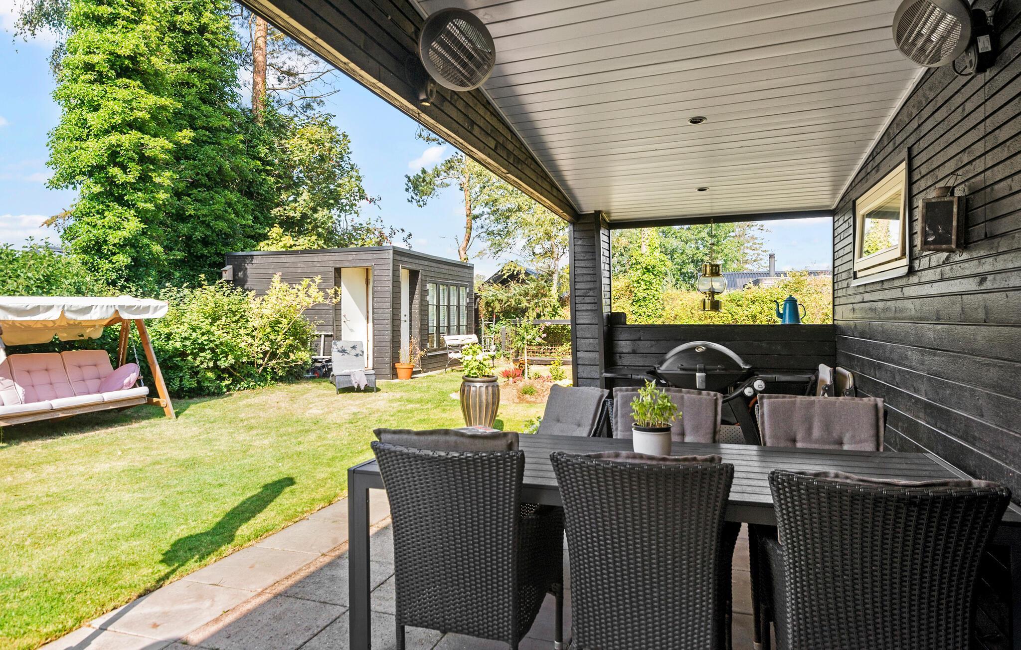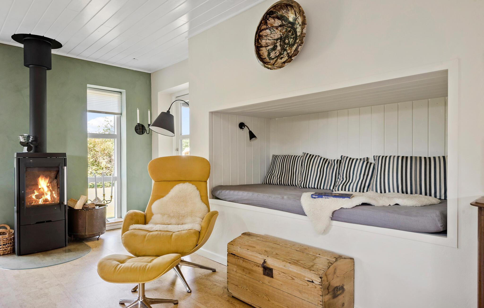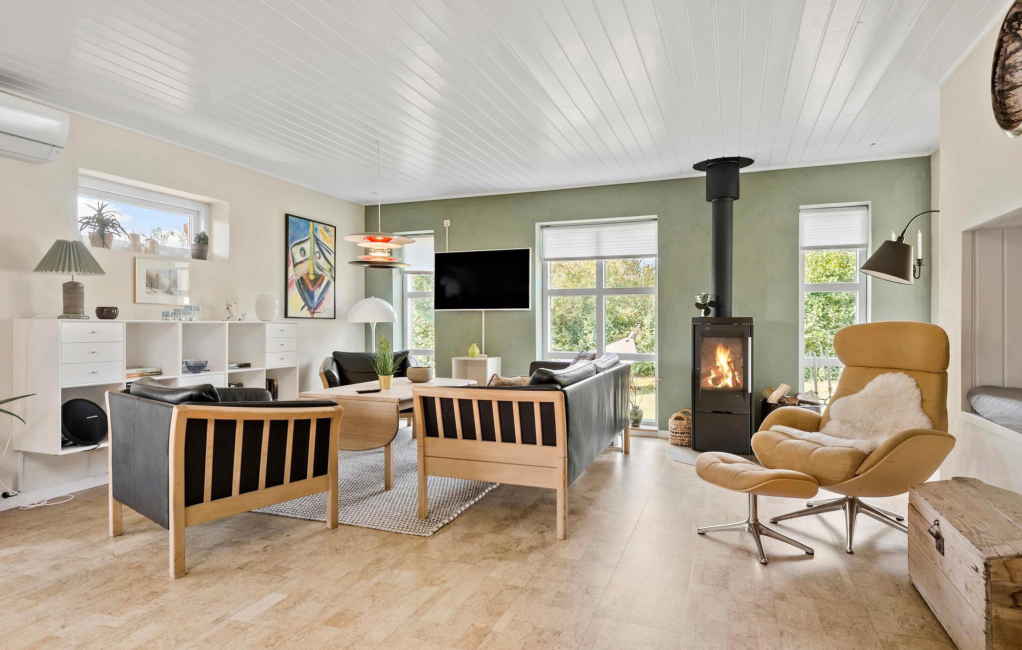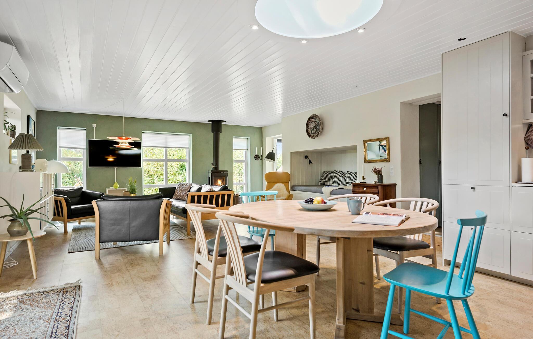 Freuen Sie sich auf herrliche Urlaubstage im östlichen Jütland, wo dieses einladende Haus Ihnen ein wohltuendes Heim bietet. Hier können Sie entspannte Stunden in ruhiger Atmosphäre genießen. Die Ausstattung ist hochwertig, und das Haus bietet Ihnen viele gemütliche Rückzugsorte. Lassen Sie sich nach einem erlebnisreichen Tag in die Sofas sinken und spüren Sie die wohlige Wärme des Kamins. Setzen Sie sich mit den Kindern in die gemütliche Alkove und lesen Sie gemeinsam ein gutes Buch. In der einladenden Wohnküche können Sie sich zu gemeinsamen Mahlzeiten, Brettspielen und der Planung des nächsten Ausflugs versammeln.