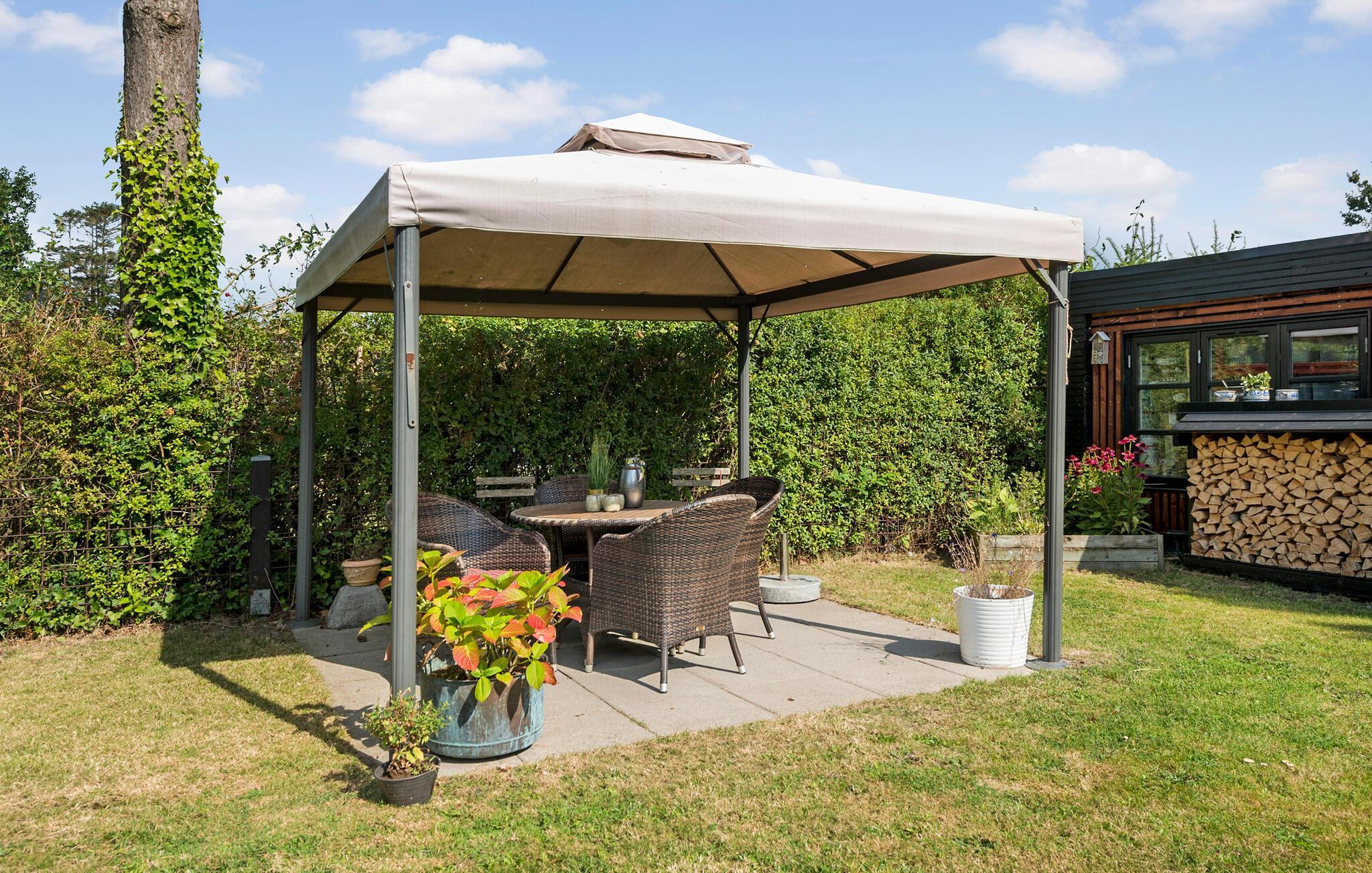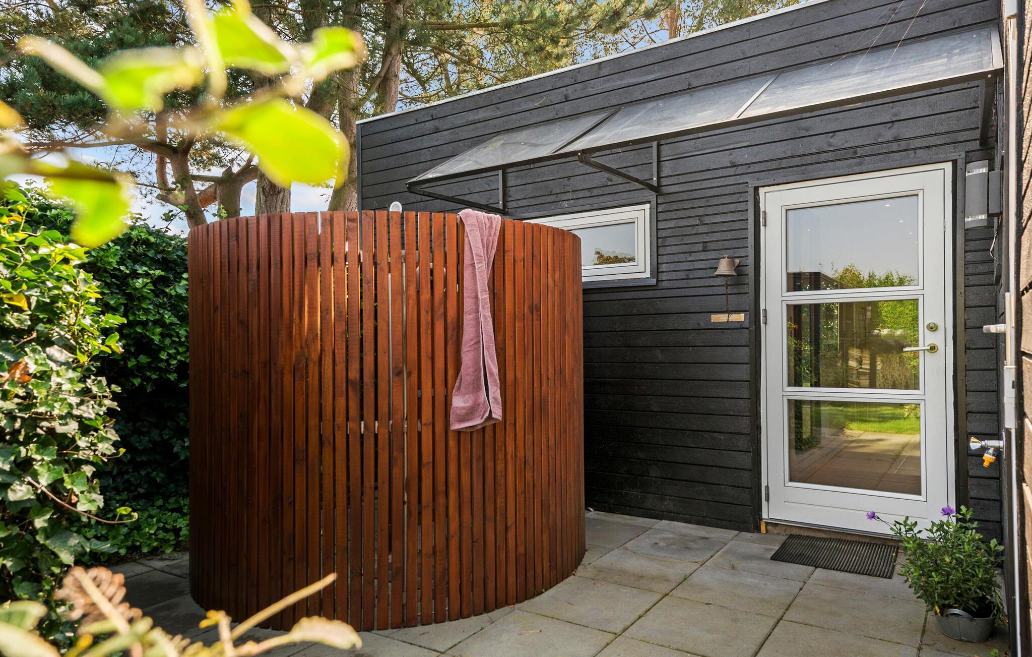 Der Garten ist eine wunderbare Oase für warme Sommertage. Genießen Sie kleine Pausen in den bequemen Gartenmöbeln. Nach einem Bad im Meer können Sie den Sand bequem unter der Außendusche abspülen.