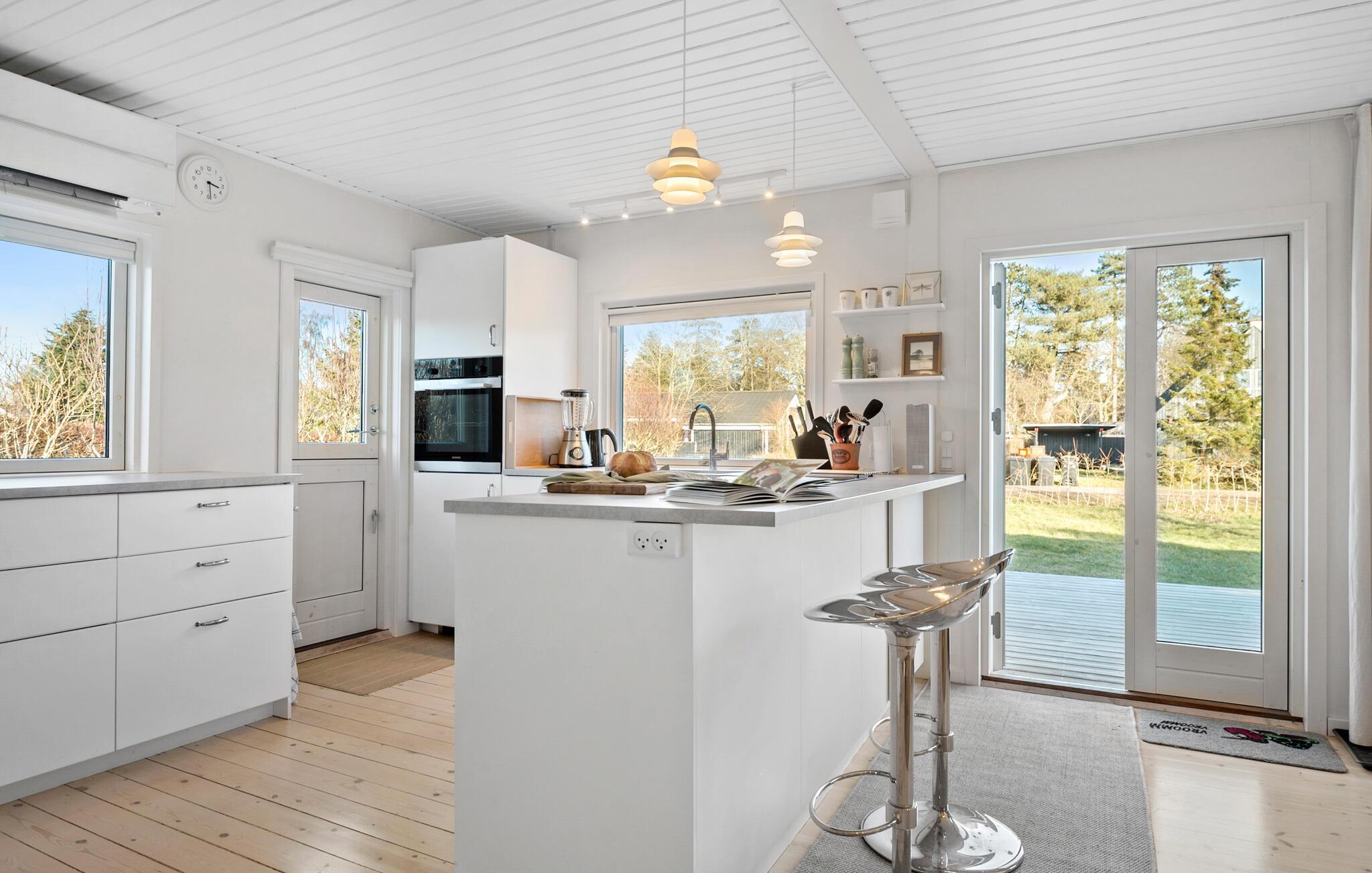 Willkommen in diesem geschmackvoll eingerichteten Urlaubsdomizil, in dem große Fenster für ein behagliches, lichtdurchflutetes Ambiente sorgen. Lassen Sie sich in der hellen und modernen Küche vom Blick in den Garten inspirieren und freuen Sie sich auf gemeinsame Mahlzeiten im behaglichen Wohnbereich. Hier werden Sie den bequemen Sitzmöglichkeiten nicht widerstehen können – entspannen Sie sich mit einem guten Buch in einem gemütlichen Sessel oder nehmen Sie für einen geselligen Spieleabend auf dem komfortablen Sofa Platz.