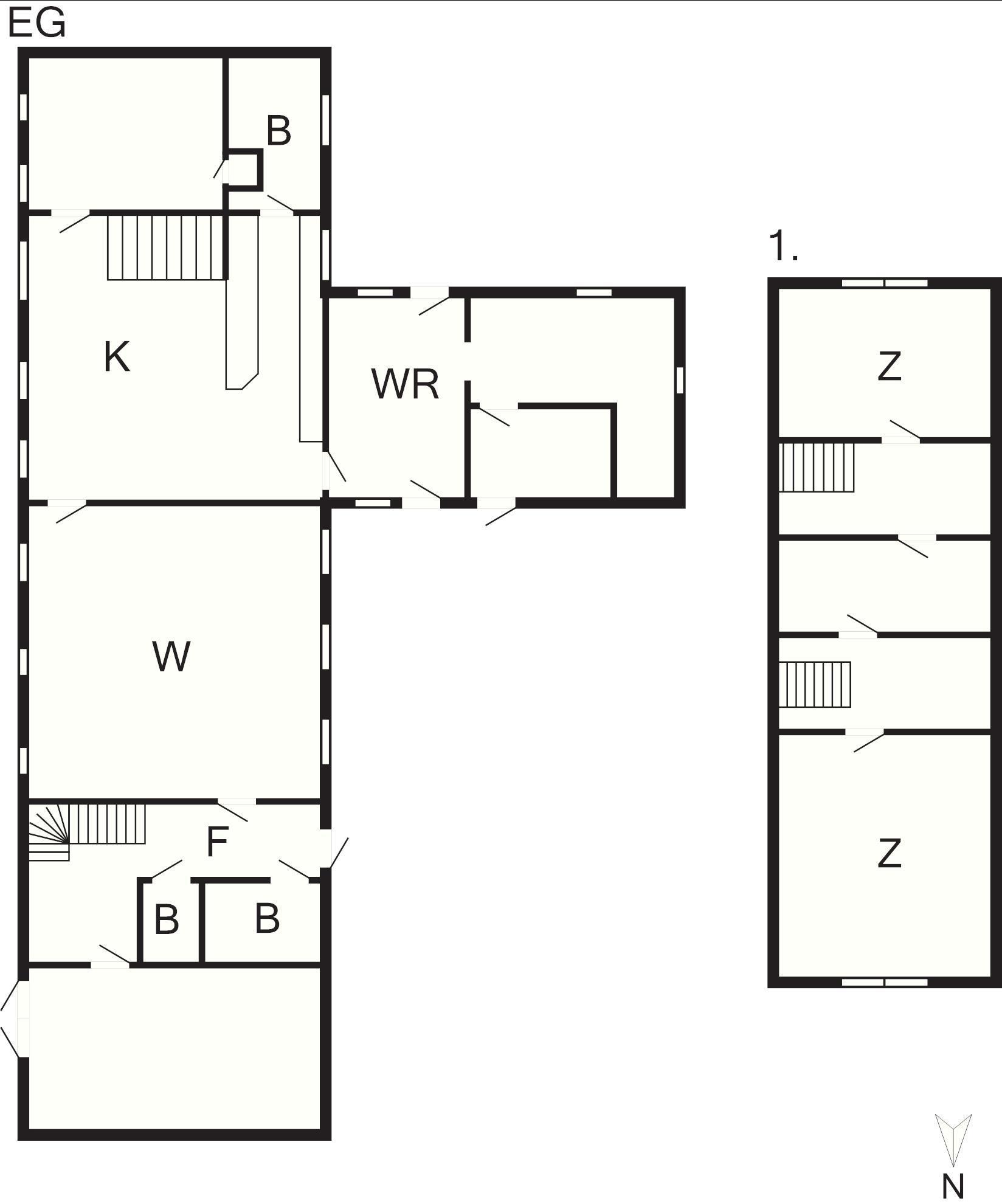 Das Ferienhaus bietet ein komfortables Schlafzimmer im Erdgeschoss und zwei große Schlafzimmer im ersten Stock. Im Obergeschoss befindet sich zudem ein geräumiger Gemeinschaftsraum, ein gemütlicher Ort zum Lesen, Spielen oder einfach zum gemeinsamen Entspannen. Von diesem Raum aus gelangt man hinaus auf die Terrasse, wo Sie die Aussicht und die frische Luft genießen können.