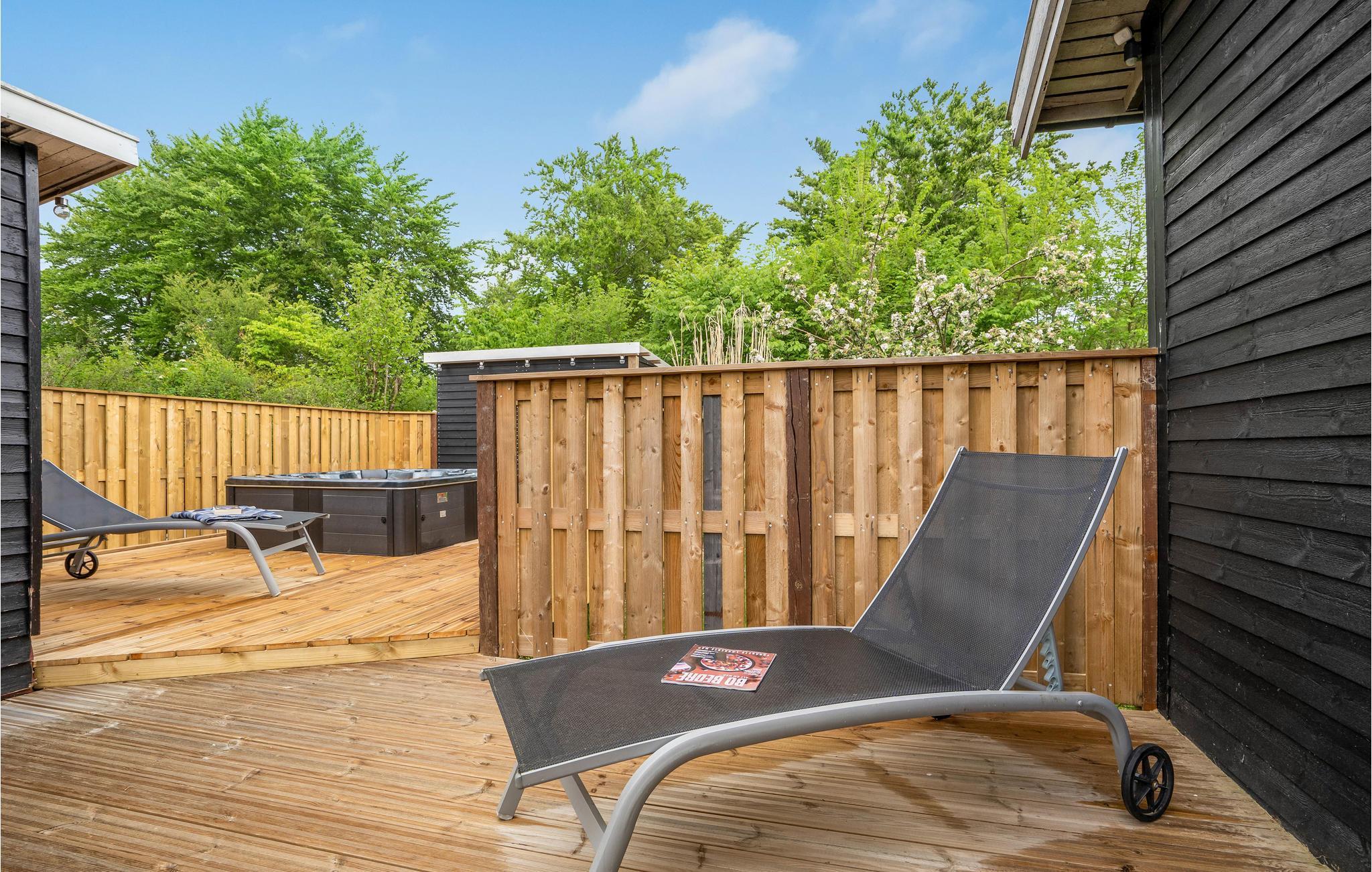 Genießen Sie Ihren Urlaub in diesem charmanten Holzhaus, nur wenige Schritte vom Meer entfernt. Mit einem hellen Wohnbereich, gemütlichem Kamin und einer gut ausgestatteten Küche bietet Ihnen das Ferienhaus ideale Bedingungen für eine erholsame Auszeit. Der lange Esstisch lädt Sie zu geselligen Mahlzeiten ein, während die großzügige Holzterrasse mit Sonnenliegen und einem Wasserbecken perfekte Momente in der frischen Luft ermöglicht. Grillen Sie am Abend und planen Ihre nächsten Aktivitäten und Ausflüge.