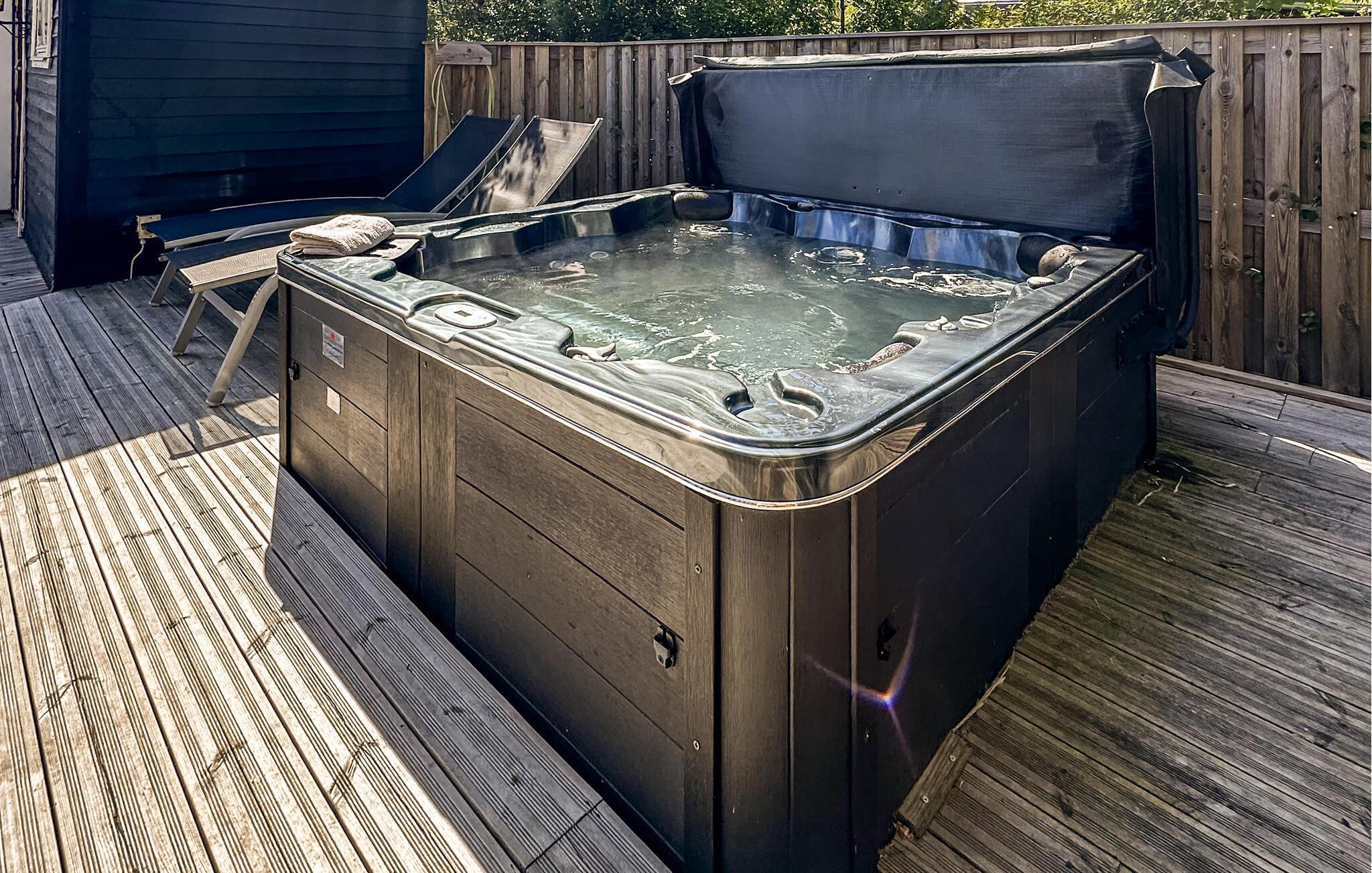 Entspannen Sie in diesem klassischen Ferienhaus mit Kamin und Wellnessbereich auf der Terrasse.