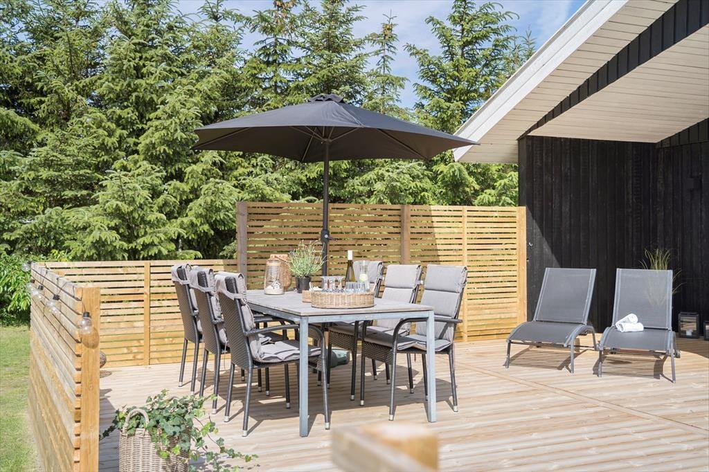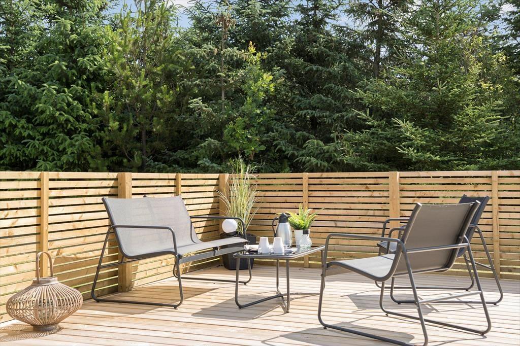 Draußen erwartet dich eine herrliche Terrasse, die zum Verweilen einlädt. Ob beim Frühstück im Sonnenschein, beim Sonnenbaden im Liegestuhl oder beim Grillen unter freiem Himmel – hier kannst du den Urlaub in vollen Zügen genießen. Der geschützte Garten ist von Bäumen und Büschen umgeben und bietet eine friedliche Atmosphäre, in der du wunderbar zur Ruhe kommst. Das sanfte Rauschen des Windes und das Zwitschern der Vögel machen das Naturerlebnis komplett. Ein perfekter Rückzugsort – ob allein, zu zweit oder mit der ganzen Familie.
