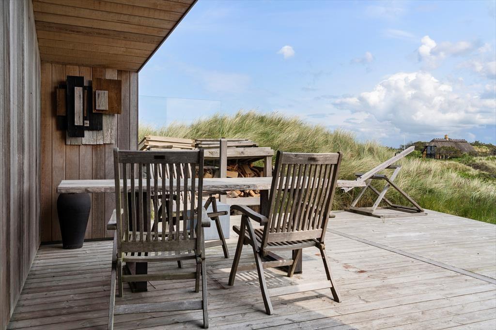 Im Sommer wird das Leben unter freiem Himmel fast zu einer natürlichen Verlängerung des Hauses. Vom Wohnbereich und dem Esszimmer gelangt ihr direkt auf die Terrasse, wo ihr mit hochgelegten Füßen die frische Meeresluft genießen könnt. Die Westterrasse lädt ein zu Sonnenbädern, gemütlichen Mahlzeiten unter freiem Himmel und langen, ruhigen Abenden mit Blick auf den Sonnenuntergang über den Dünen. Rund ums Haus gibt es mehrere geschützte und sonnige Ecken – und dank der erhöhten Lage habt ihr das Gefühl, Himmel und Meer ganz nah zu sein. Grillt gemeinsam, kuschelt euch in Decken und lasst den Tag im Kreise eurer Liebsten entspannt ausklingen.
