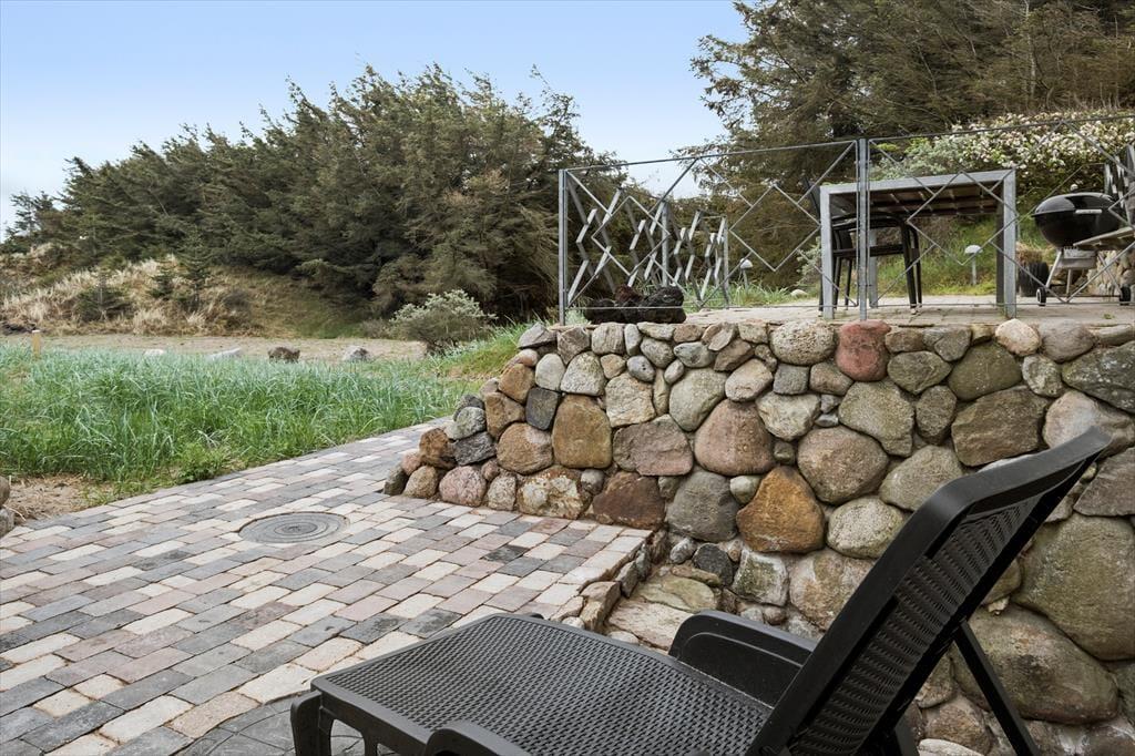 Sie verbringen Ihre Urlaubstage auf einem 6.700 m² großen Dünengrundstück, das das gesamte Jahr hindurch mit einem fantastischen Tierleben zu verzaubern weiß. Angenehmerweise ist ein Teil des Grundstücks eher flacher Natur, wodurch Sie dort gut parken und zum Haus gelangen können. Hier gibt es eine Grasfläche, die zum Umhertollen und zu Ballspielen aller Art animiert. Der Rest des Grundstücks ist wunderbar hügelig und der Natur überlassen. Ein kleiner Pfad führt Sie zu einem Aussichtsplatz. Rund um das Haus befinden sich mehrere sonnenverwöhnte Terrassen mit qualitativ guten Gartenmöbeln.