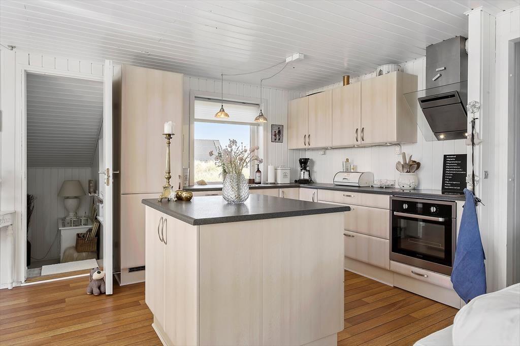Dieses aus dem Jahre 1968 stammende Ferienhaus kann bereits auf einige geschichtsträchtige Jahre zurückblicken. Dennoch wurde es stets gut gepflegt und in 2012 einer umfassenden Renovierung unterzogen. Heute empfängt es Sie mit einer neueren Küche und einem herrlichen Badezimmer mit Dusche und Whirlpool und verfügt über sämtliche Annehmlichkeiten, die Sie von einem modernen Ferienhaus erwarten. Das Haus beinhaltet einen offenen Küchen- und Wohnbereich, drei bezaubernde Schlafräume mit viel Platz und ein tolles Bad, in dem Sie zusätzlich Ihre Wäsche waschen und trocknen können. Die Inneneinrichtung strahlt viel Wärme und Behaglichkeit aus. Ansprechende Möbel und viele stimmungsvolle Details sorgen für ein äußerst angenehmes Wohngefühl. An warmen Sommertage können Sie einfach die Terrassentüren öffnen und die wunderbare Seeluft und das herrliche nordische Licht das Haus durchfluten lassen. Sollte sich das Wetter einmal nicht von seiner besten Seite zeigen, empfiehlt es sich, den Kamin anzufeuern und das drahtlose Internet zu nutzen. Bitte bringen Sie Ihr eigenes Laptop oder Tablet von zuhause mit. Den Zugangscode erhalten Sie bei der Schlüsselabholung.