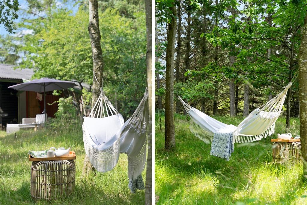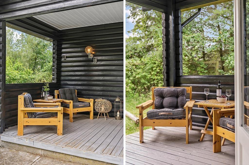 Vom Wohnraum treten Sie hinaus auf eine überdachte Südterrasse, die schnell zu Ihrem persönlichen Favoriten avancieren wird. Konkurrenz machen der Terrasse zahlreiche andere schöne Aufenthaltsplätze auf dem idyllischen Naturgrundstück. Wie wäre es beispielswiese mit einem Nickerchen in der Hängematte oder einem Mittagsessen am Gartentisch im Schatten der Bäume? Allabendlich lädt der hauseigene Grill zu stimmungsvollen Runden inmitten grüner, ruhiger Umgebung ein.